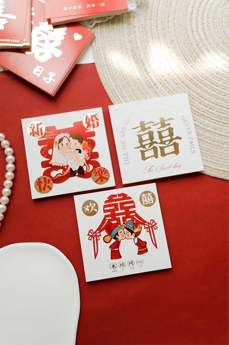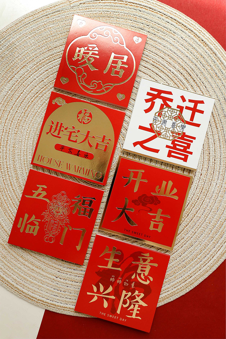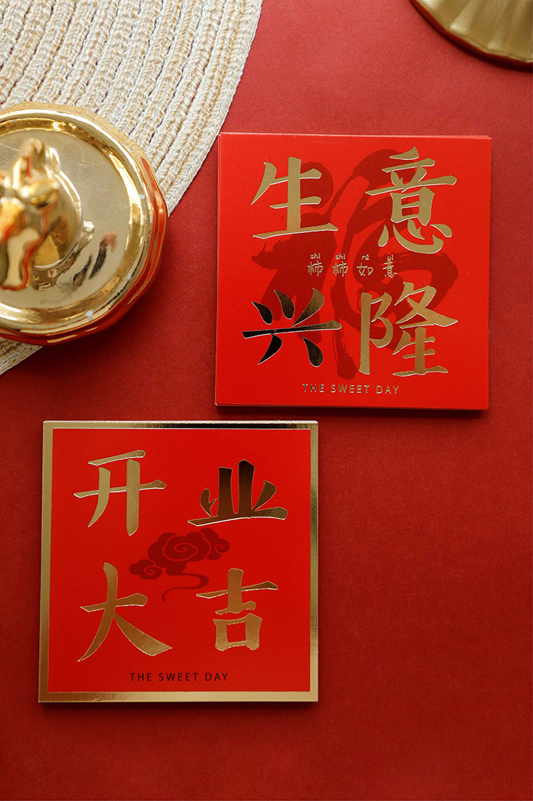 | Tamaño | 01 Tarjeta de boda feliz 90/colgando,02 Tarjeta de apertura de inauguración 90/colgando |
