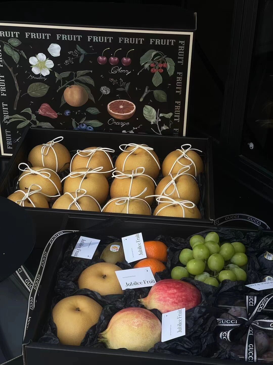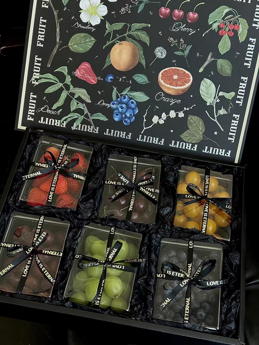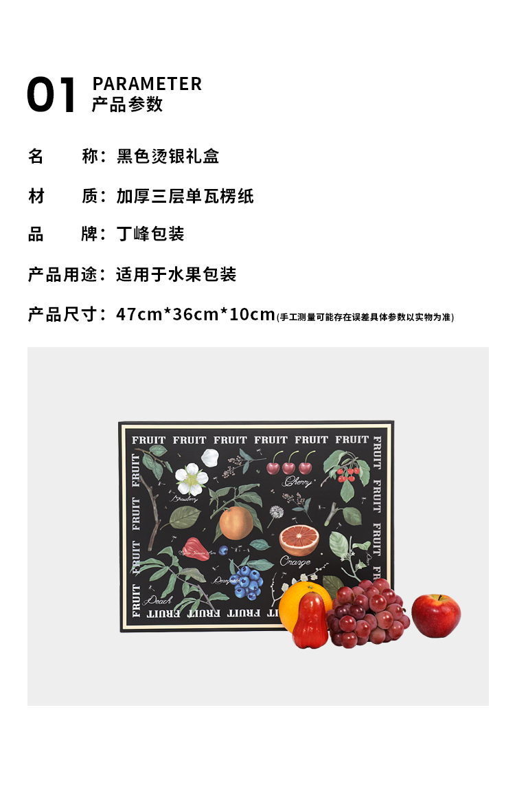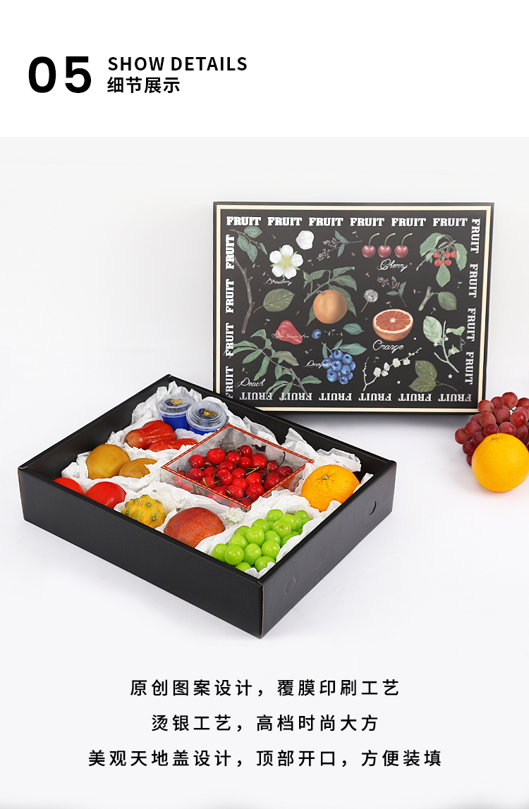 Caja general de frutas, caja de regalo de plata negra, naranja de uva, peras fragrantes, caja de regalo de frutas mezcladas, caja vacía