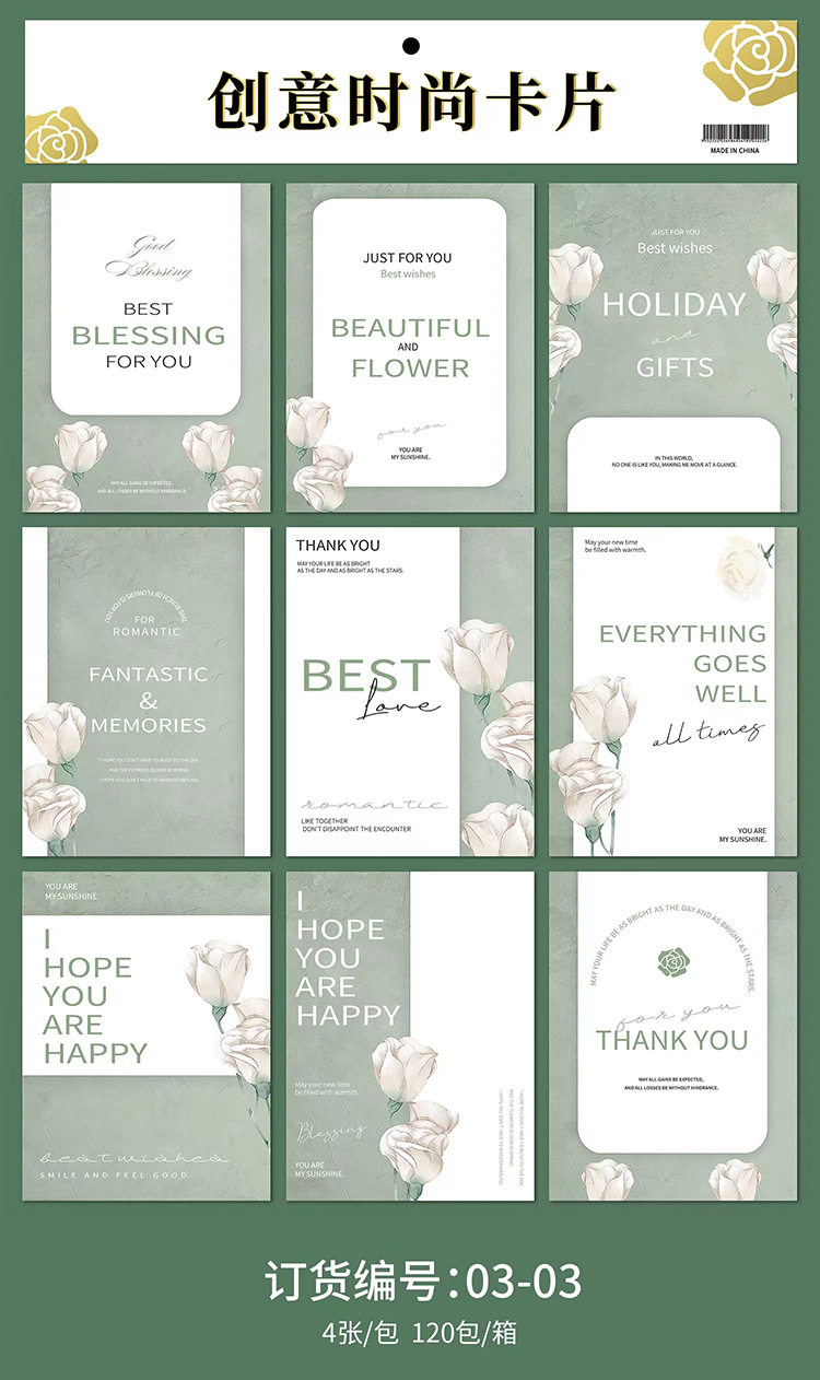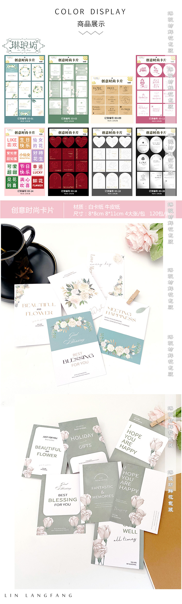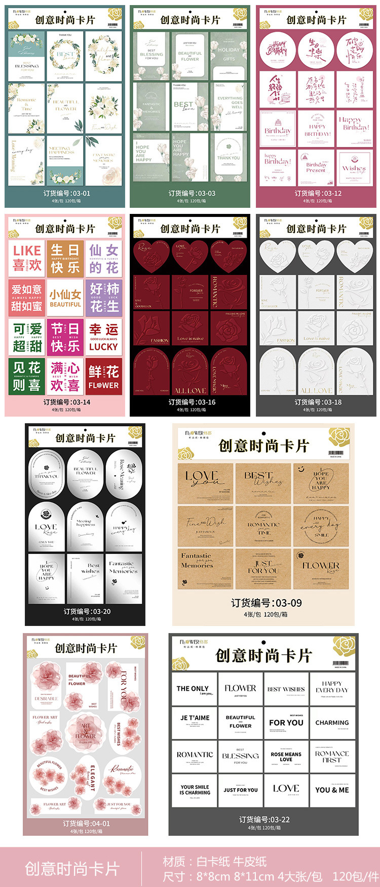 | tamaño | 01 estilo 36 hojas pequeñas/paquete,03 estilo 36 hojas pequeñas/paquete,09 estilo 36 hojas pequeñas/paquete (papel kraft),12 estilos 48 hojas pequeñas/paquete (Feliz cumpleaños),14 estilos 48 hojas pequeñas/paquete,16 estilos 48 hojas pequeñas/paquete (en relieve),18 estilos 48 hojas pequeñas/paquete (en relieve),20 estilos 36 hojas pequeñas/paquete (superficie de espejo),0322 modelos 64 hojas pequeñas/bolsa (inglés),0401 modelo 44 hojas pequeñas/bolsa |
