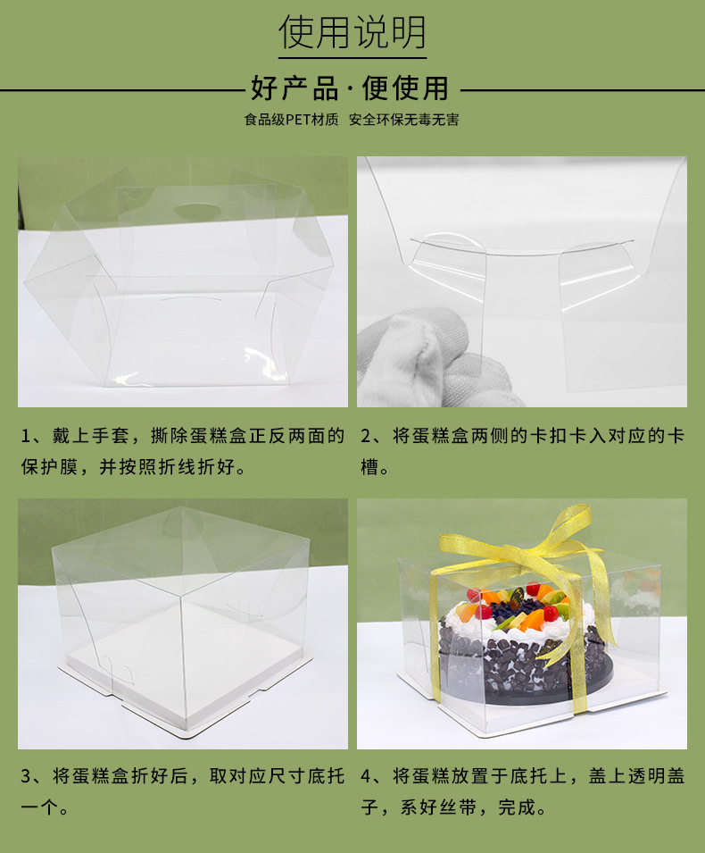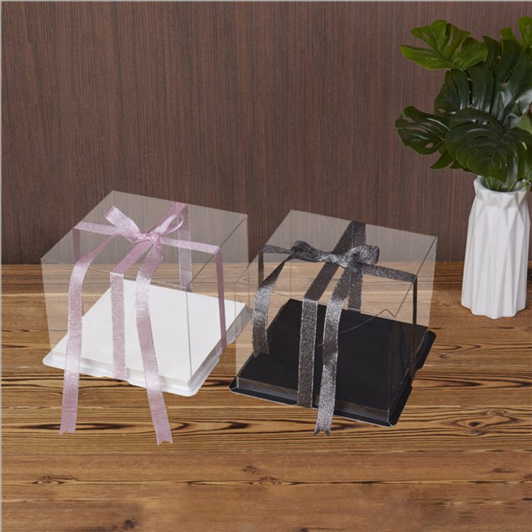 Caja de pastel transparente de alta calidad perezoso dos en uno 4/6/8/10 pulgadas caja de regalo de embalaje para hornear de una sola capa doble