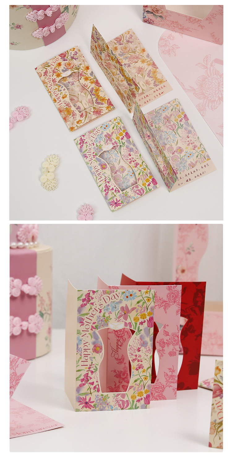 Feliz día de la madre, escribiendo tarjetas de felicitación plegables, flores tridimensionales, tarjetas de decoración de flores, ramo creativo, bendiciones, decoraciones navideñas