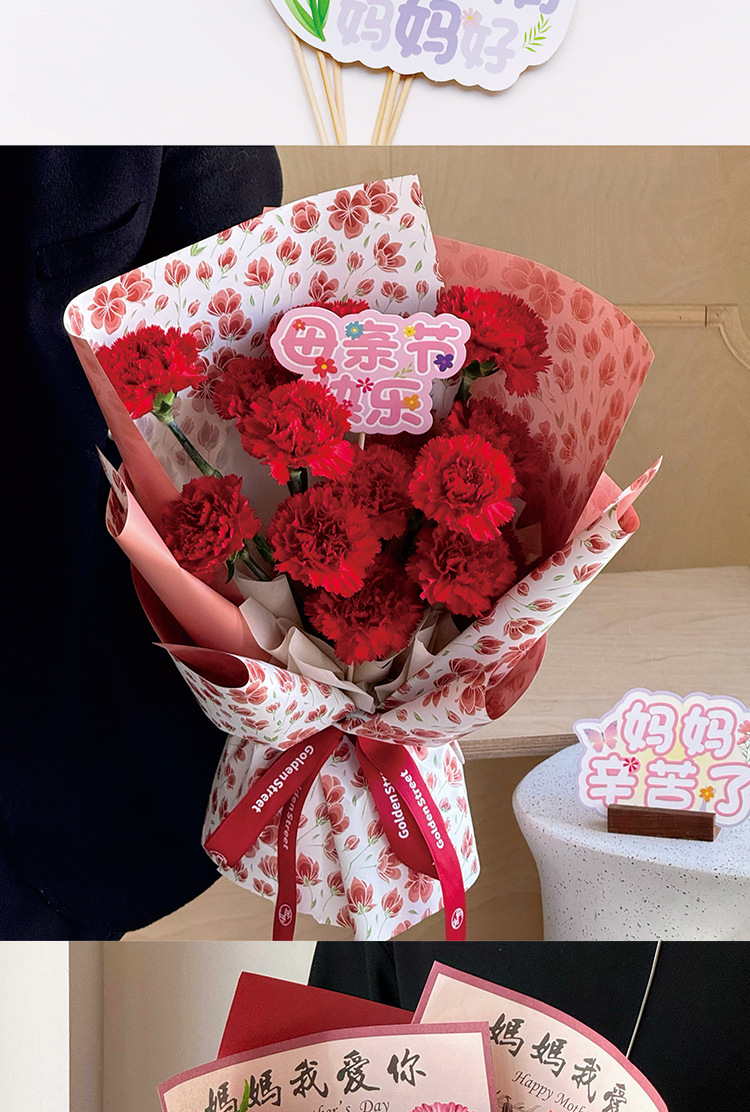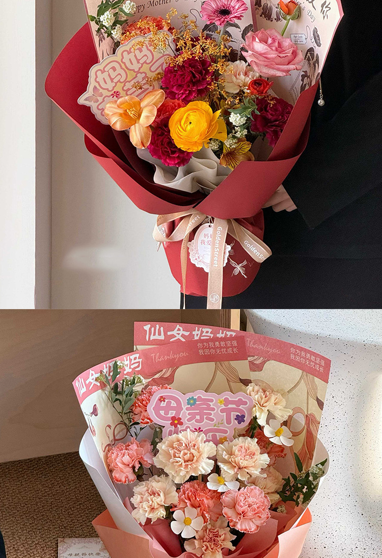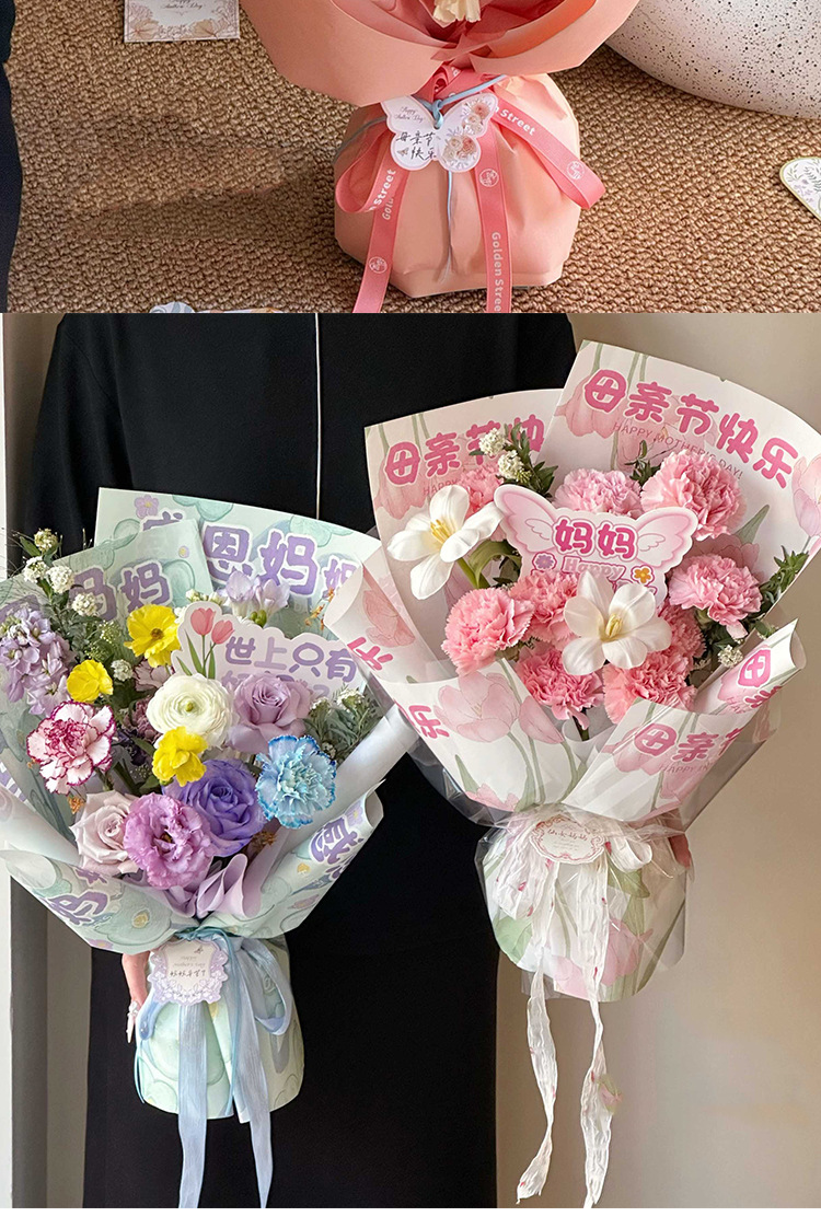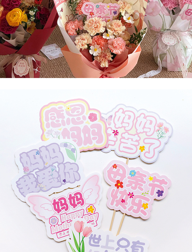 Feliz Día de la Madre, tarjeta de flores, tarjeta colgante francesa, simple mensaje de vacaciones, tarjeta de felicitación, decoración de regalo.
