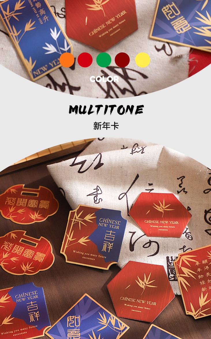 Nuevos productos de cordier de siete colores Tarjetas de decoración de Año Nuevo Tarjetas de felicitación Tarjetas postales