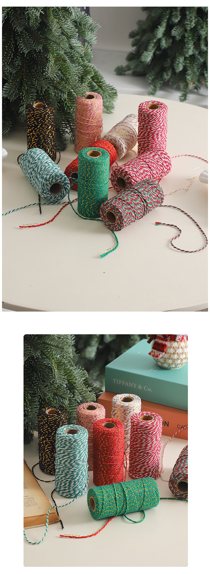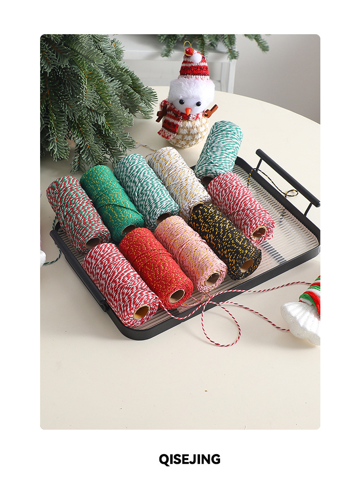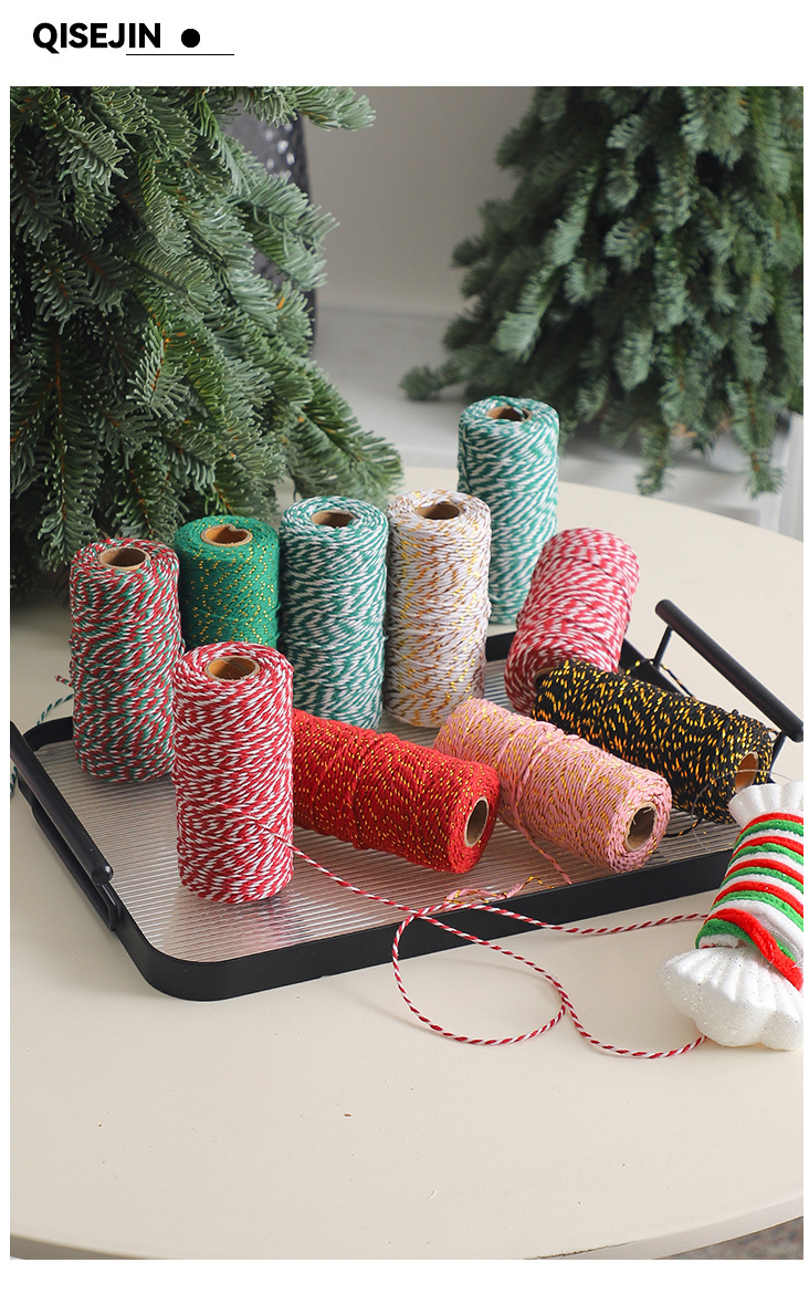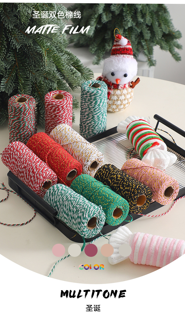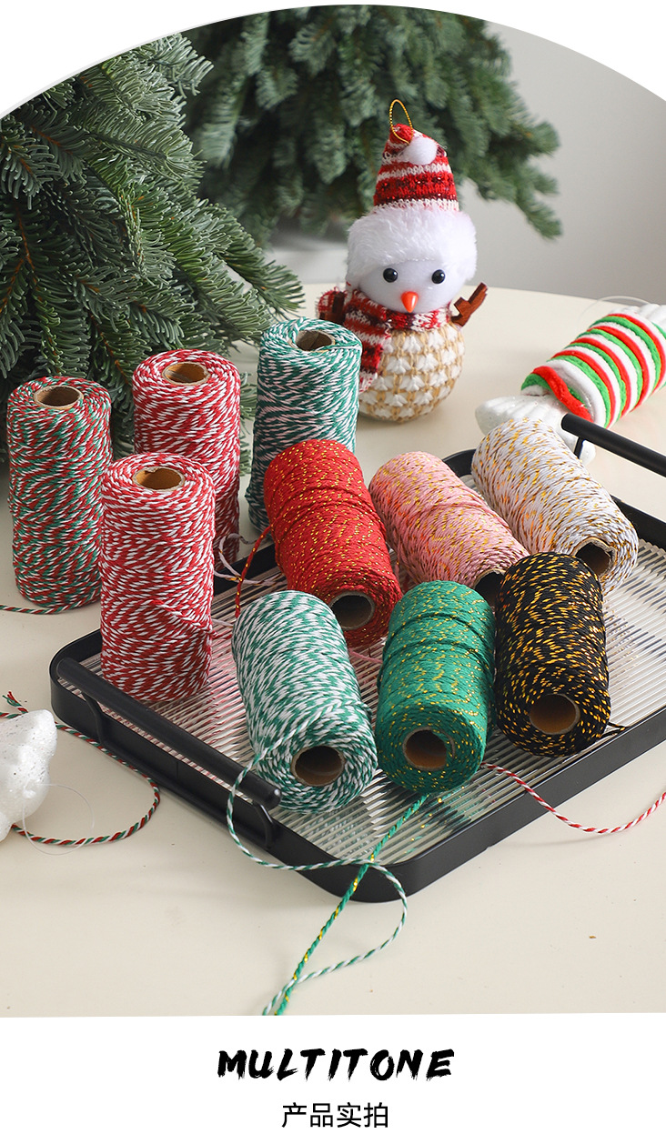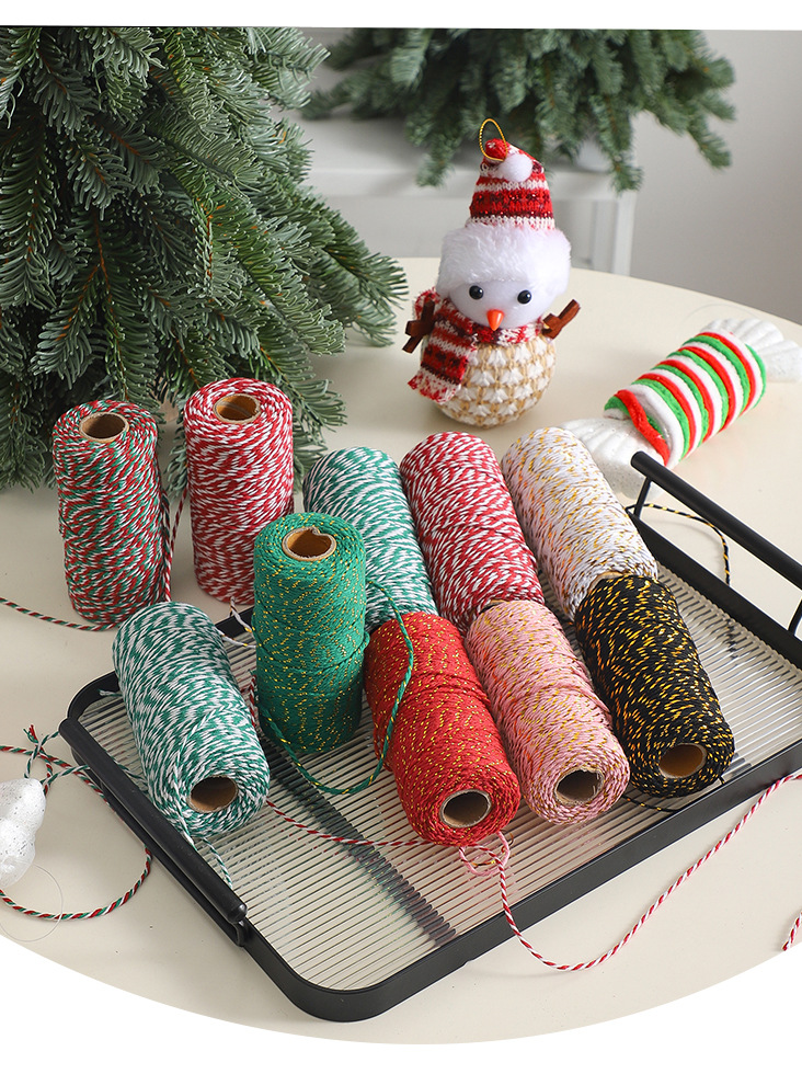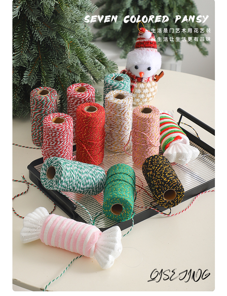 Cuerdas de algodón de dos colores de siete colores de navidad, cuerdas de regalo de embalaje de flores, flores de embalaje de regalos, florista DIY hecha a mano
