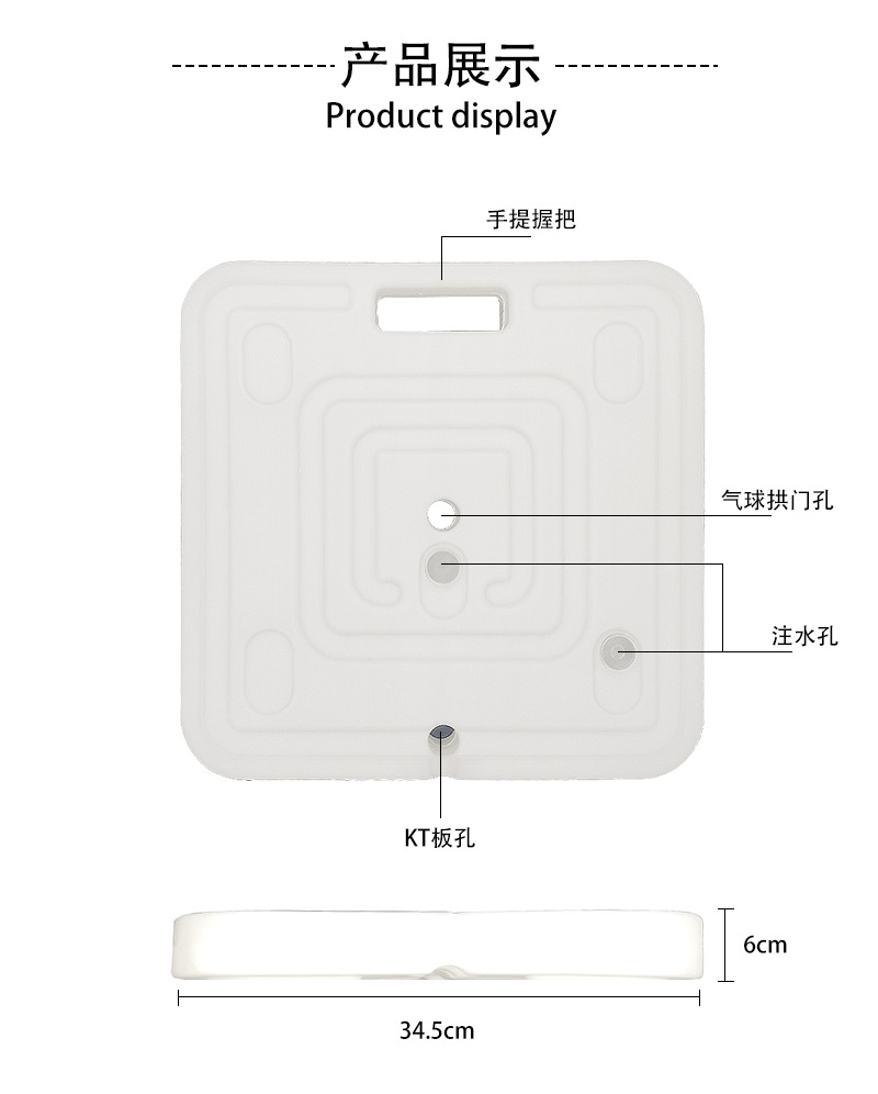 Balón kt placa base de inyección de agua cuadrada al por mayor arco columna guía de diseño decoración redonda pequeña base soporte