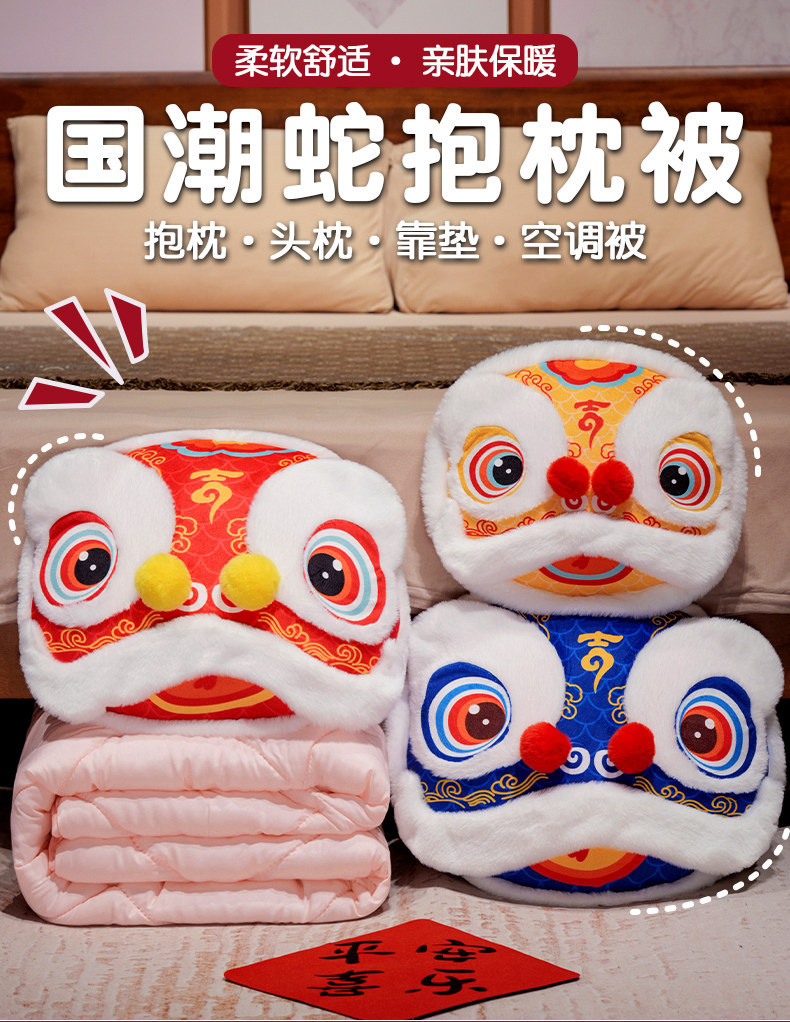 Guochao serpiente 3 - en - 1 mantas de almohada china muñeca de viento despierta león sofá de celebración regalos de Año Nuevo regalos de la empresa
