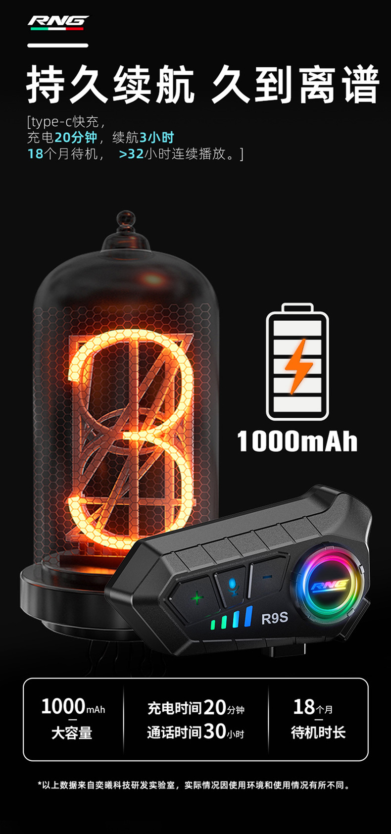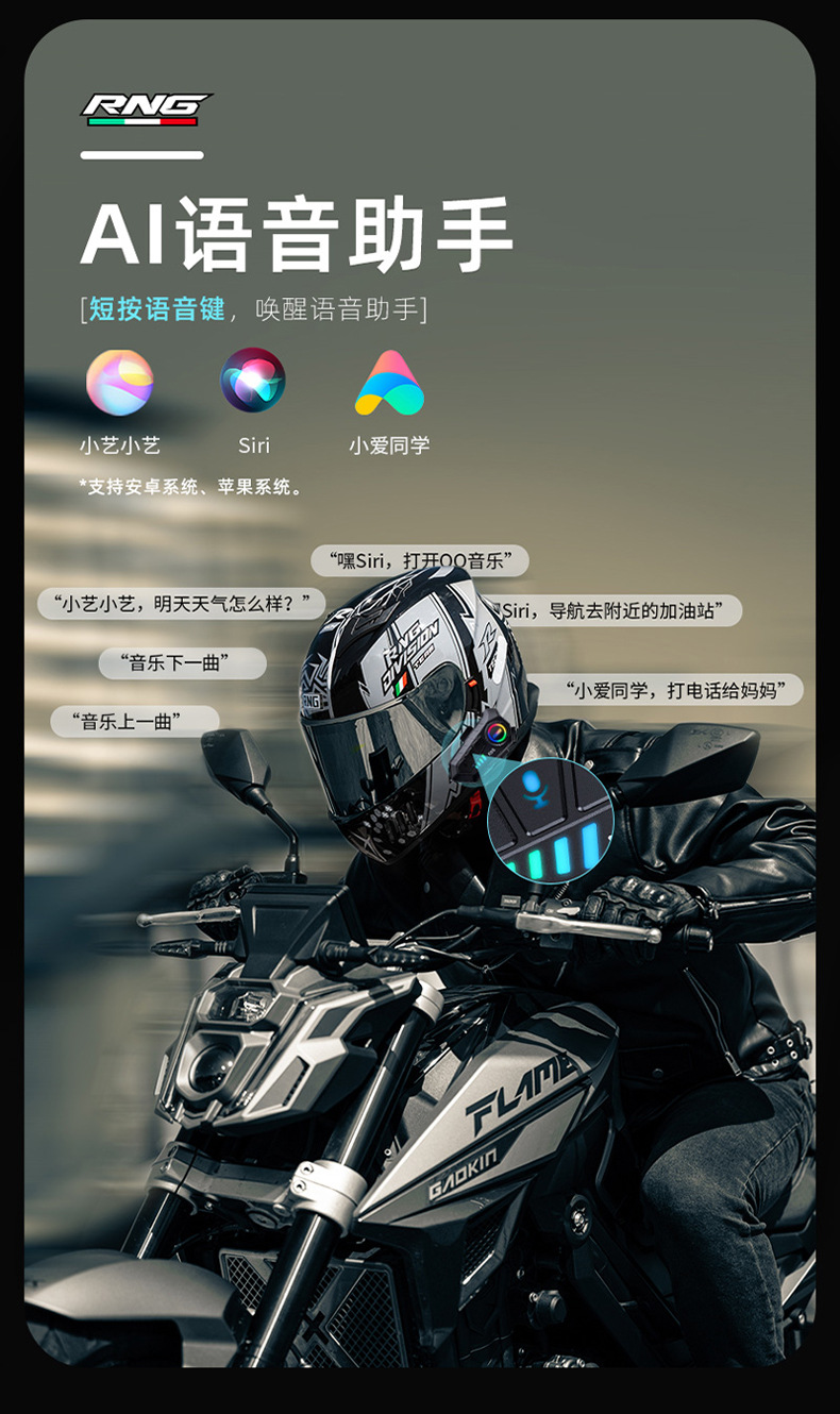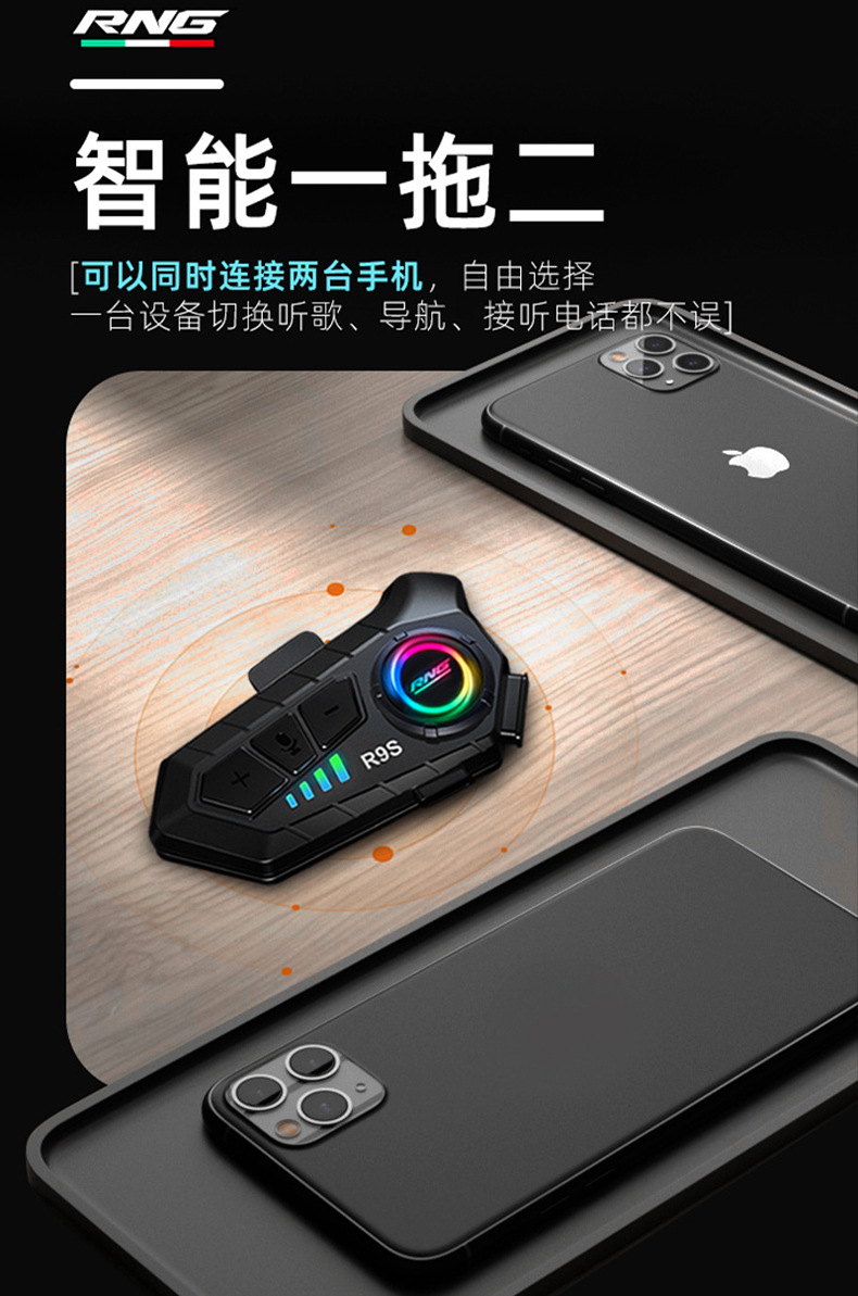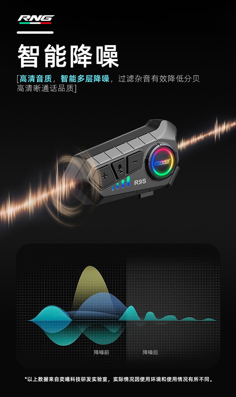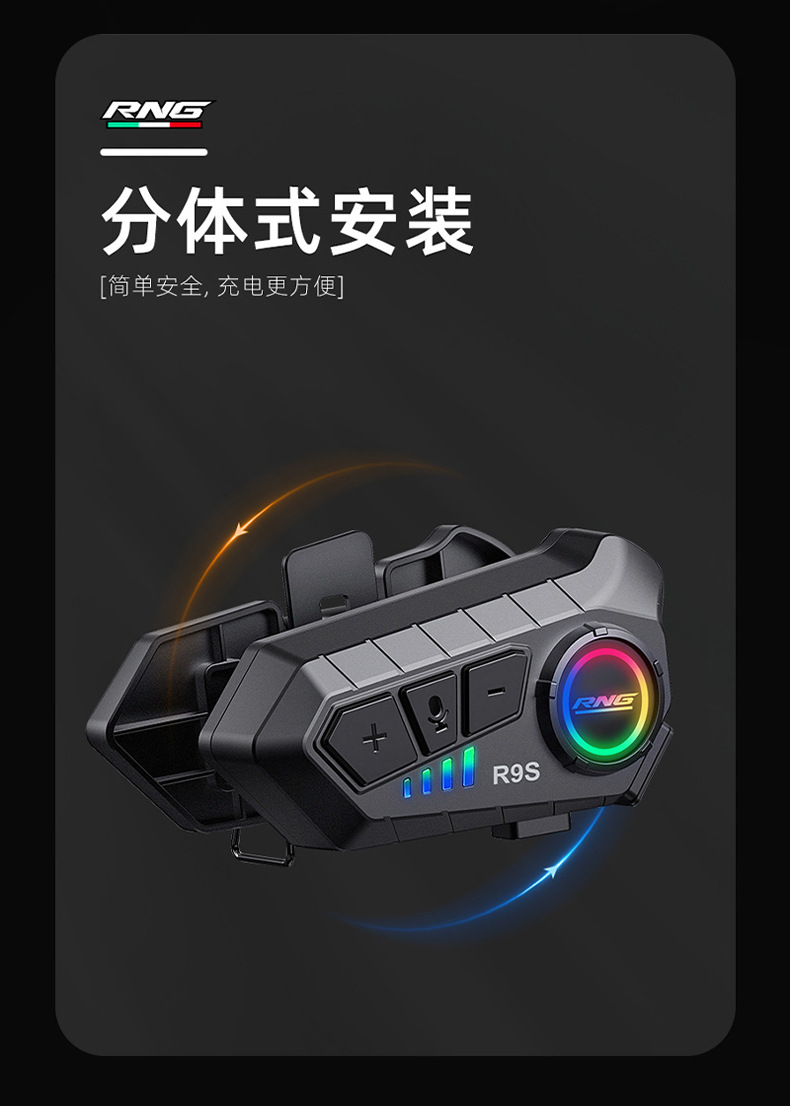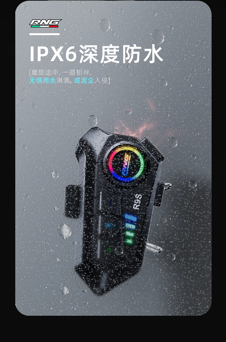 Casco de Motocicleta R9S de la Marca RNG con Auriculares Bluetooth, Resistente al Agua y al Polvo, RGB Colorido, Casco Integral con Luces RGB Deslumbrantes