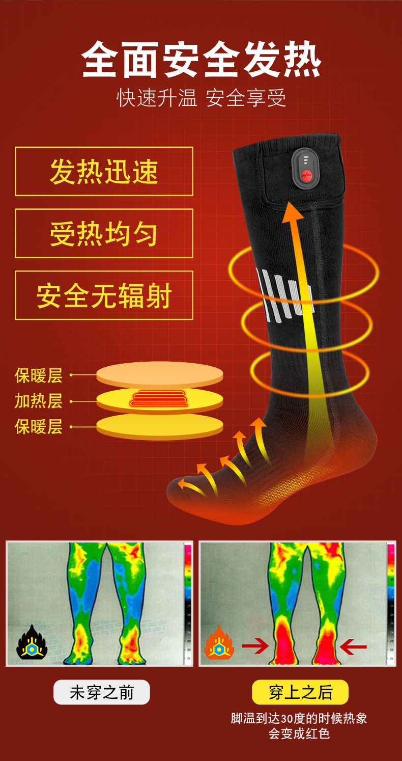 Calcetines térmicos transfronterizos calcetines eléctricos calentadores calcetines calentadores calent