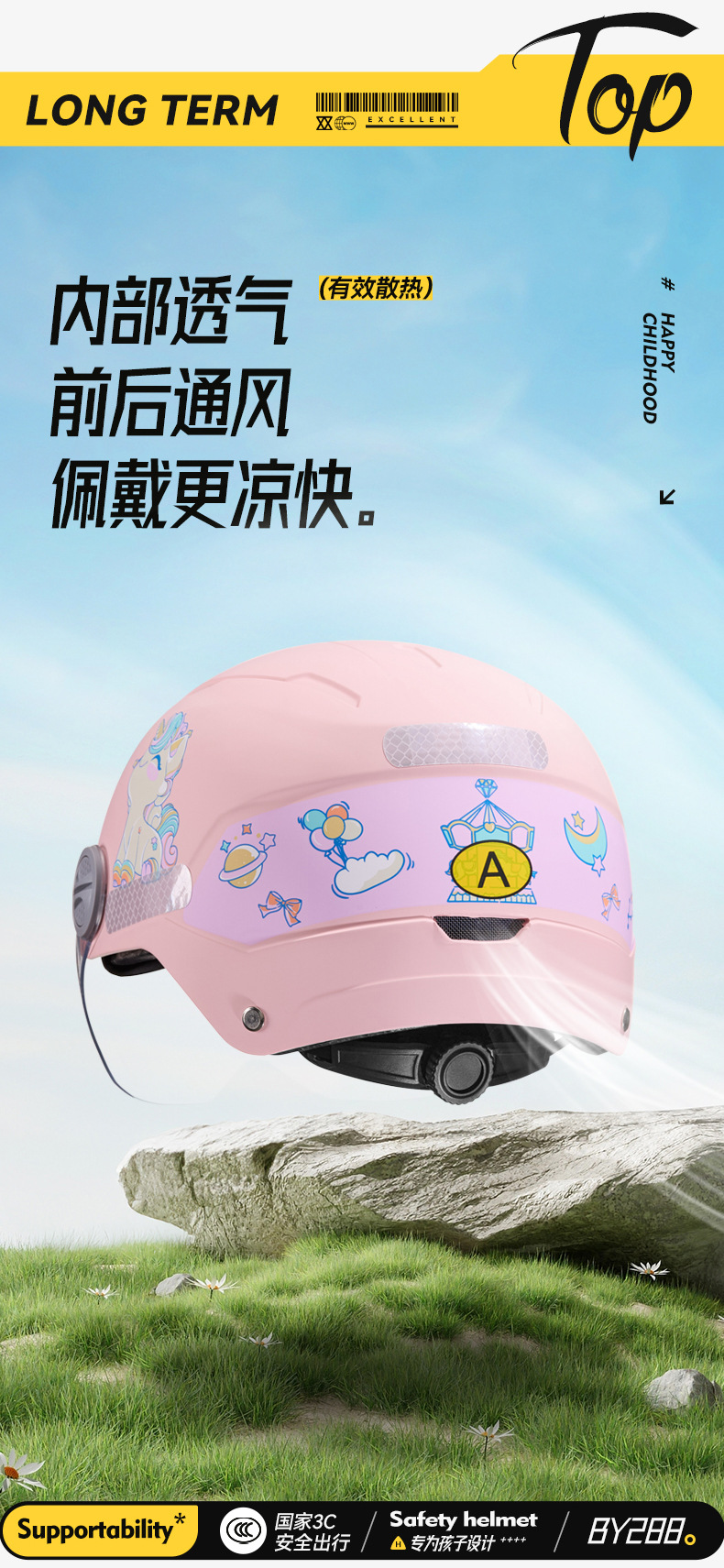 3C nuevo casco de motocicleta para niños casco de bicicleta de patineta coche eléctrico niño niñas casco de verano de dibujos animados