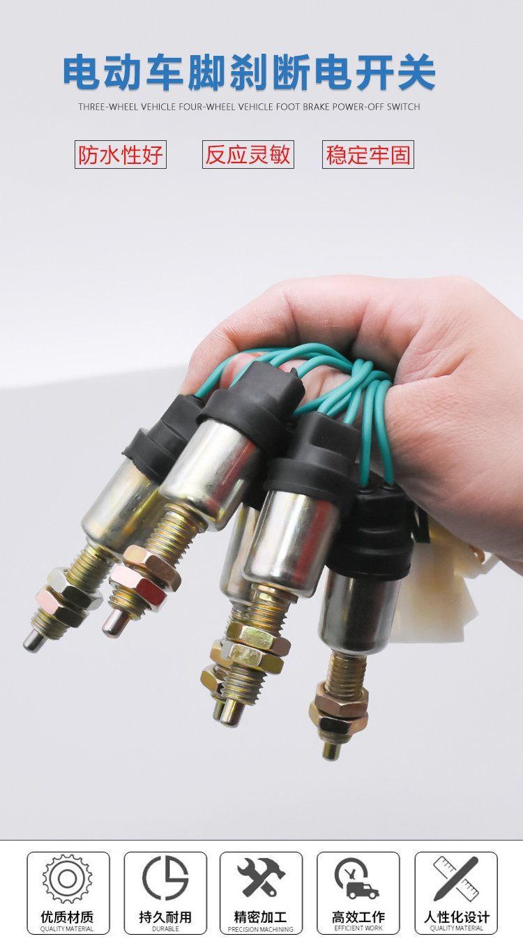 Eléctrico de cuatro ruedas vehículo de freno apagado interruptor cobertizo coche pie freno triciclo 2 hilos interruptor de línea de luz de freno accesorios de la motocicleta