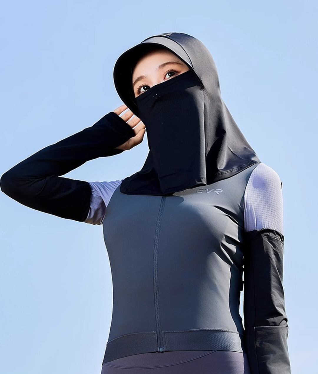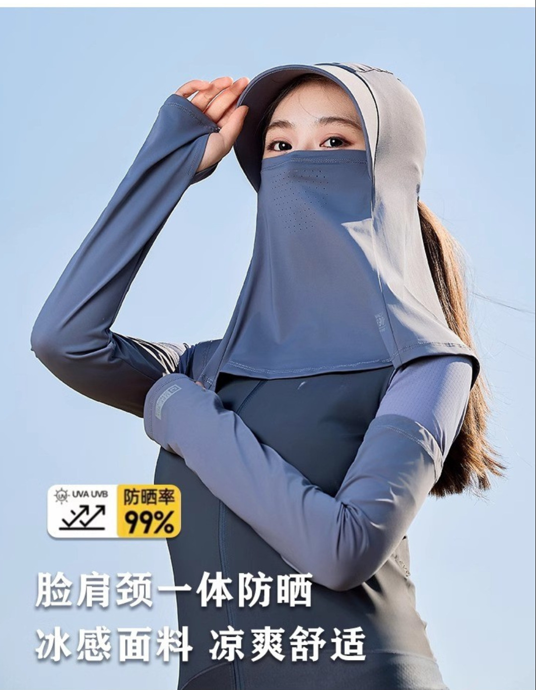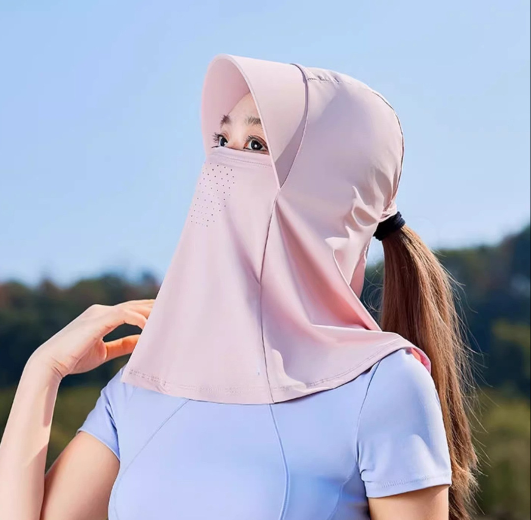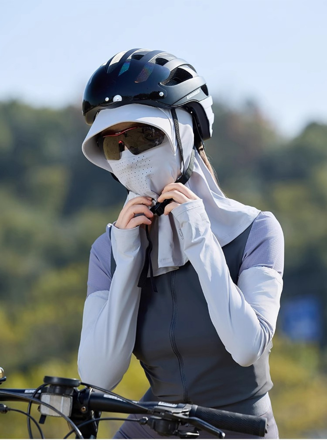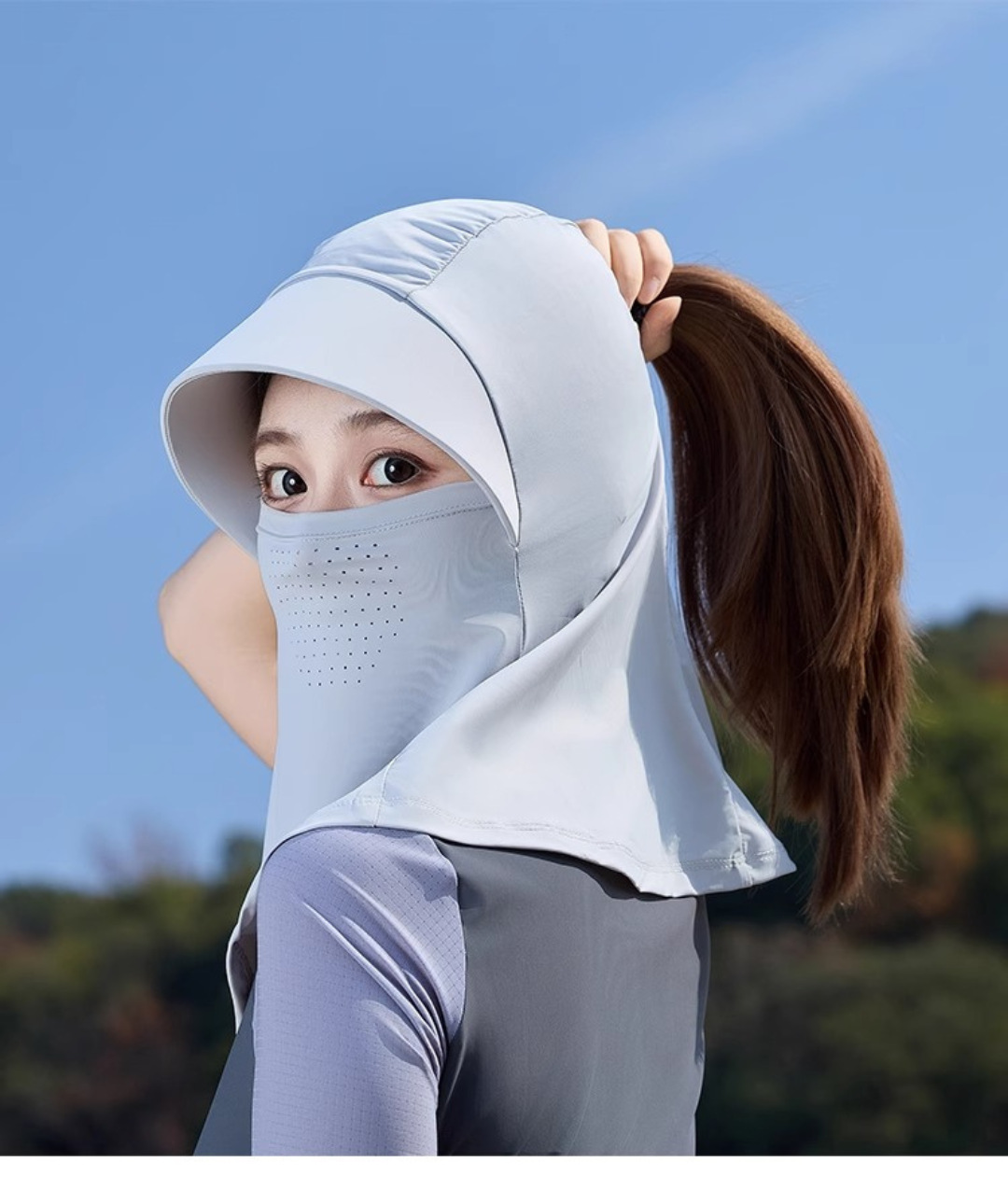 Toda la cara sombrero solar para niños sombrero solar de verano anti-UV máscara de cuello para montar al aire libre sombrero de sol sensación fría