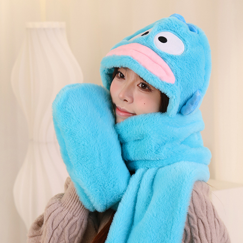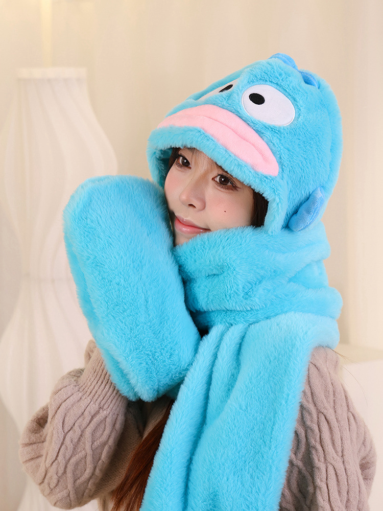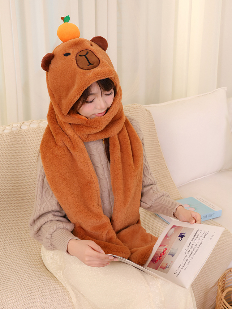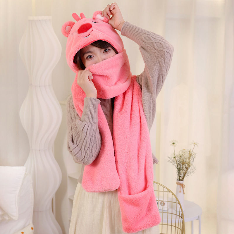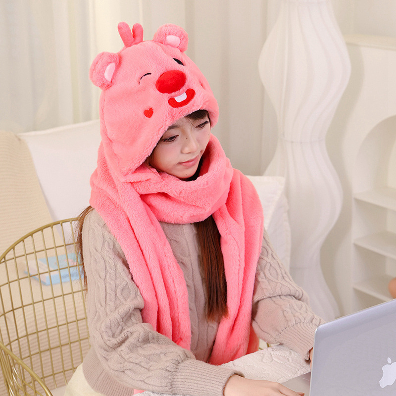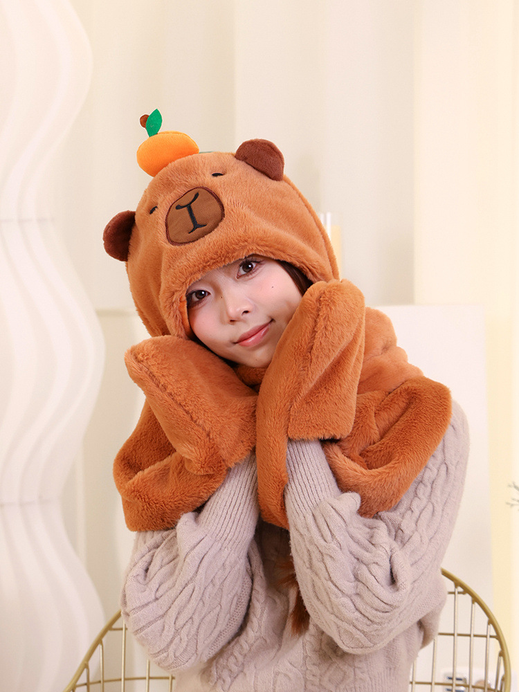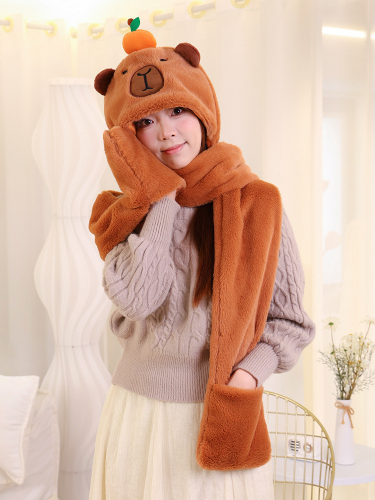 Kapibala sombrero bufanda todo en uno mujer invierno felpa lindo babero bicicleta protección contra el frío engrosamiento calor traje de tres piezas