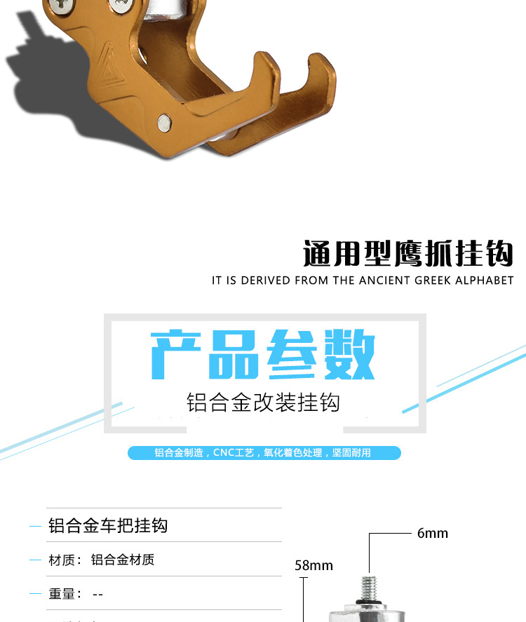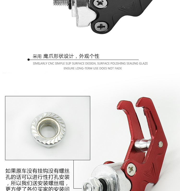 Pedal de coche eléctrico gancho de la motocicleta gancho delantero bloqueo modificado equipaje Eagle Claw gancho accesorios de suspensión de aleación de aluminio