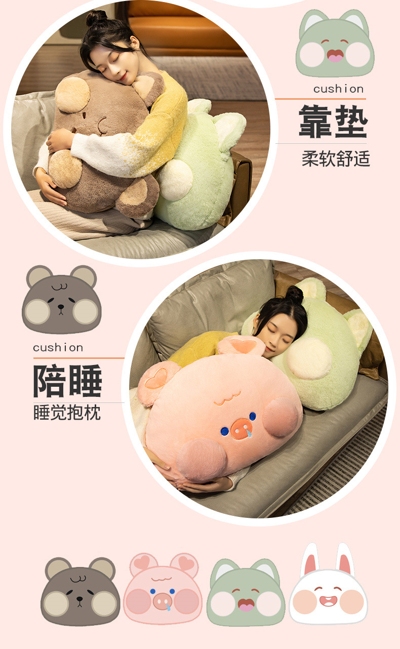Creativo suave conejo gato almohada juguete de peluche oso cerdo muñeca hogar sofá almohada muñeca