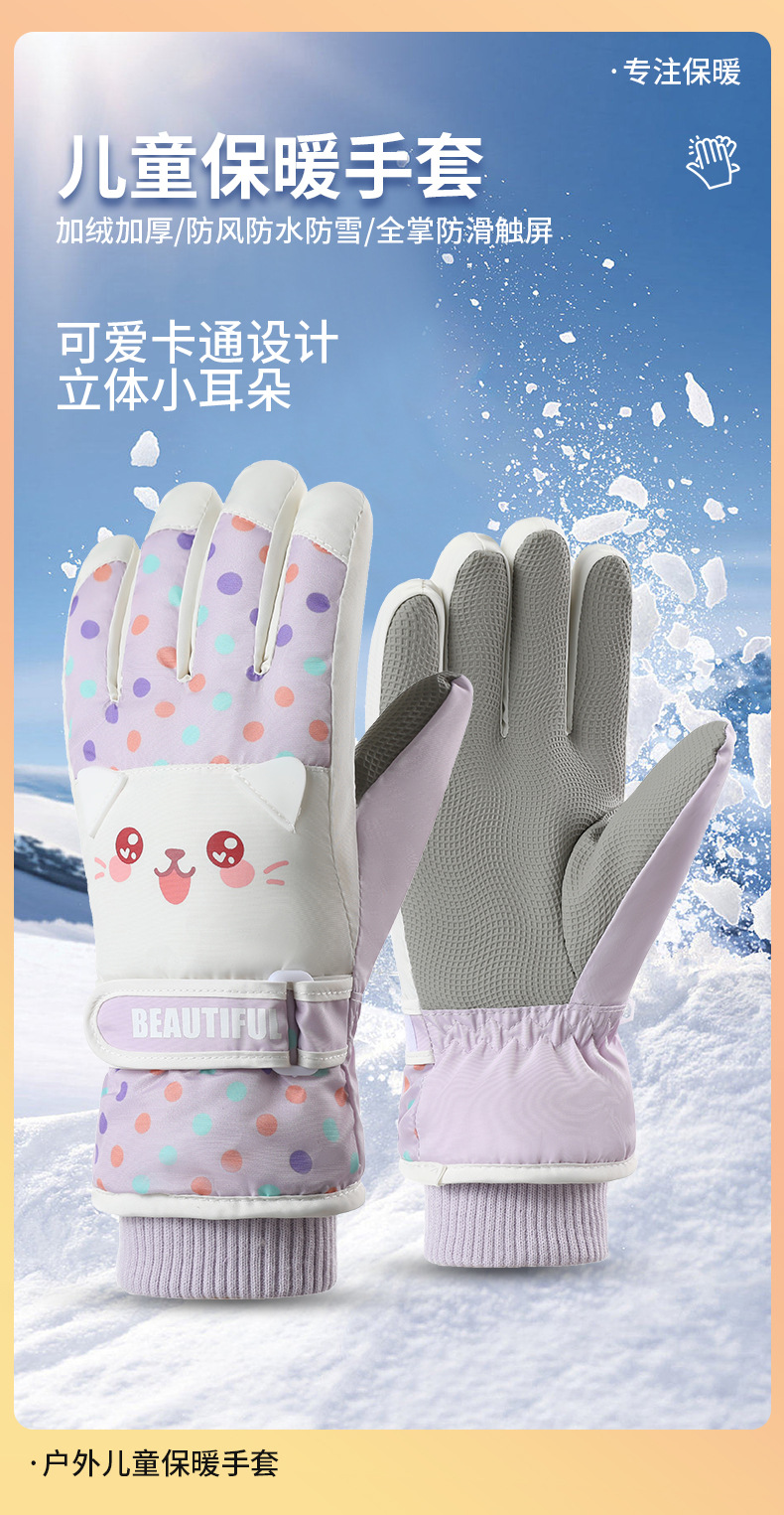 Guantes para niños cálidos invierno lindo corazón de niña conejo rosa de esquí montar guantes de pantalla táctil impermeables de lana