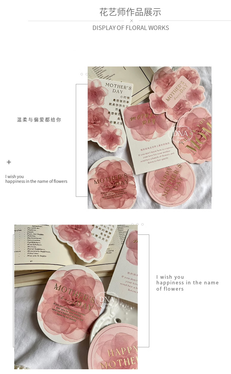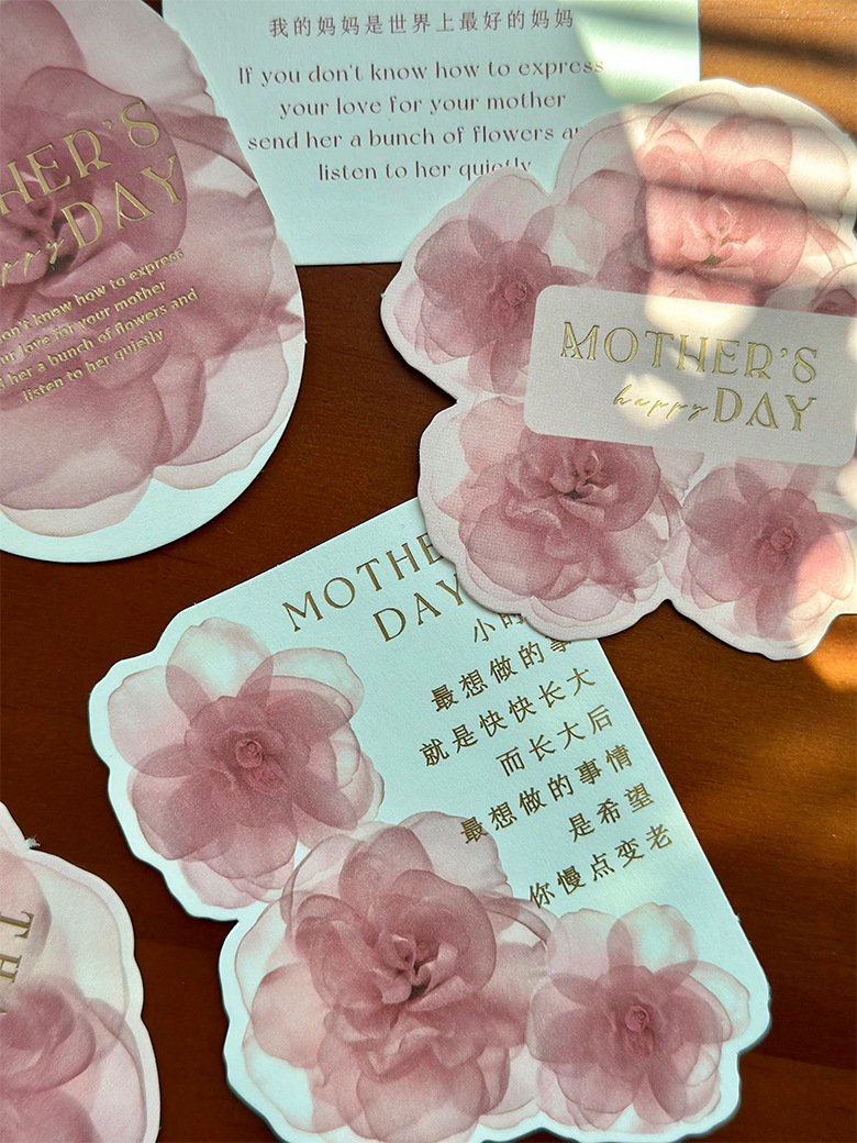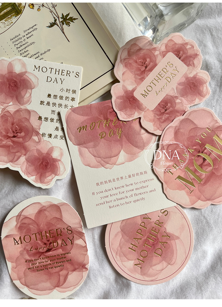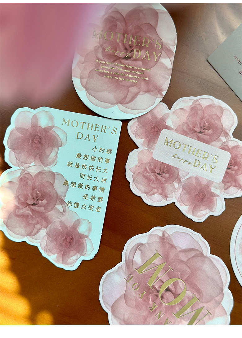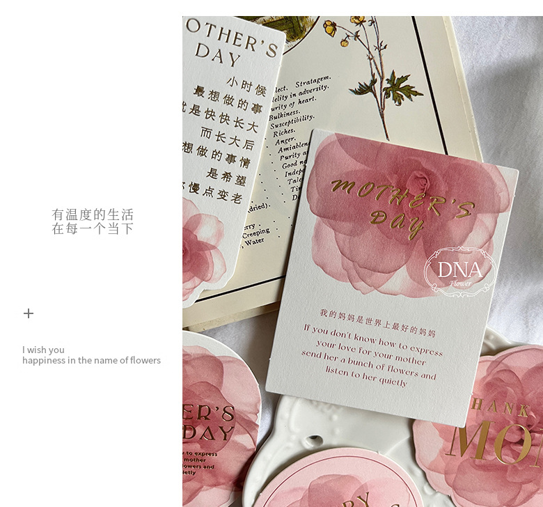 2024 tarjetas de estampado de oro, día de la madre, polvo ligero, tarjetas de felicitación, tarjetas de felicitación, flores pintadas, flores, flores