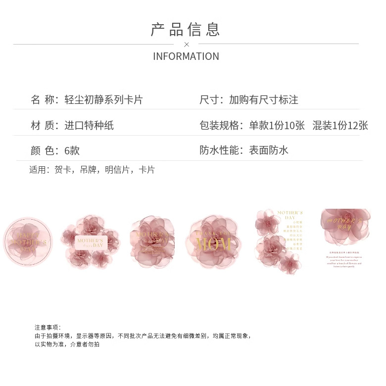 | Tamaño | 12 tarjetas mixtas de polvo ligero, 12 tarjetas mixtas de flores, 12 tarjetas de flores, 12 tar |