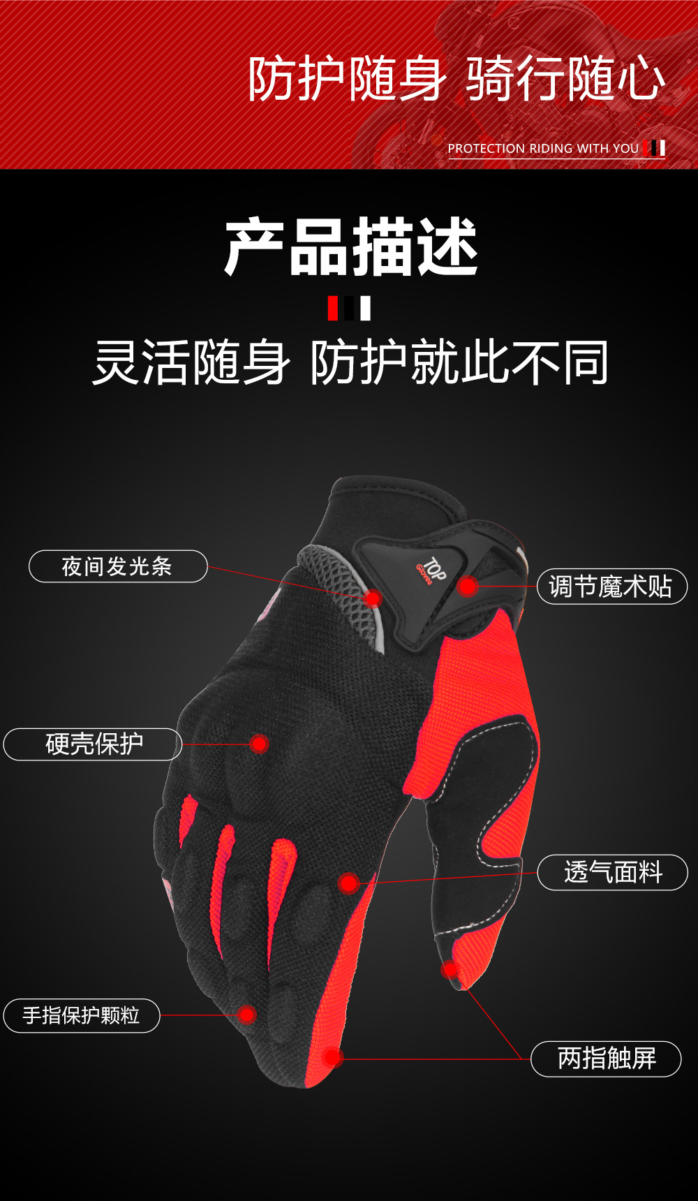 Guantes de motocicleta a prueba de caídas transpirables cuatro estaciones ciclismo locomotora de carreras de dedos resistentes al desgaste antideslizante para llevar guantes de pantalla táctil para hombres