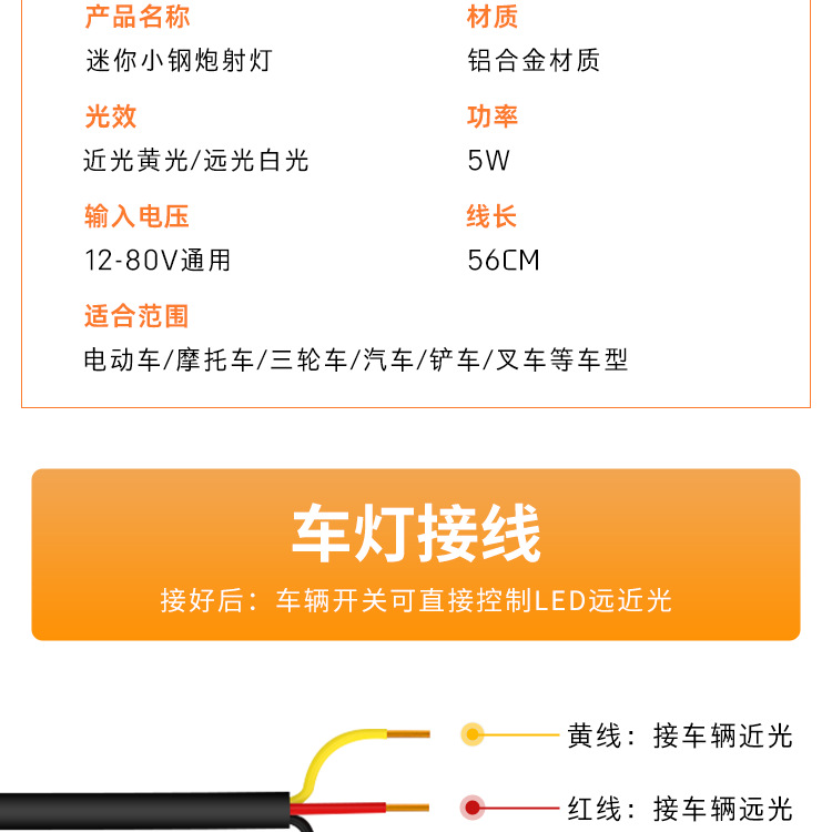 Luces para vehículos eléctricos, focos para motocicletas, faros LED, bombillas de cañón pequeñas de luz potente, luces auxiliares ultrabrillantes impermeables de 12-80v