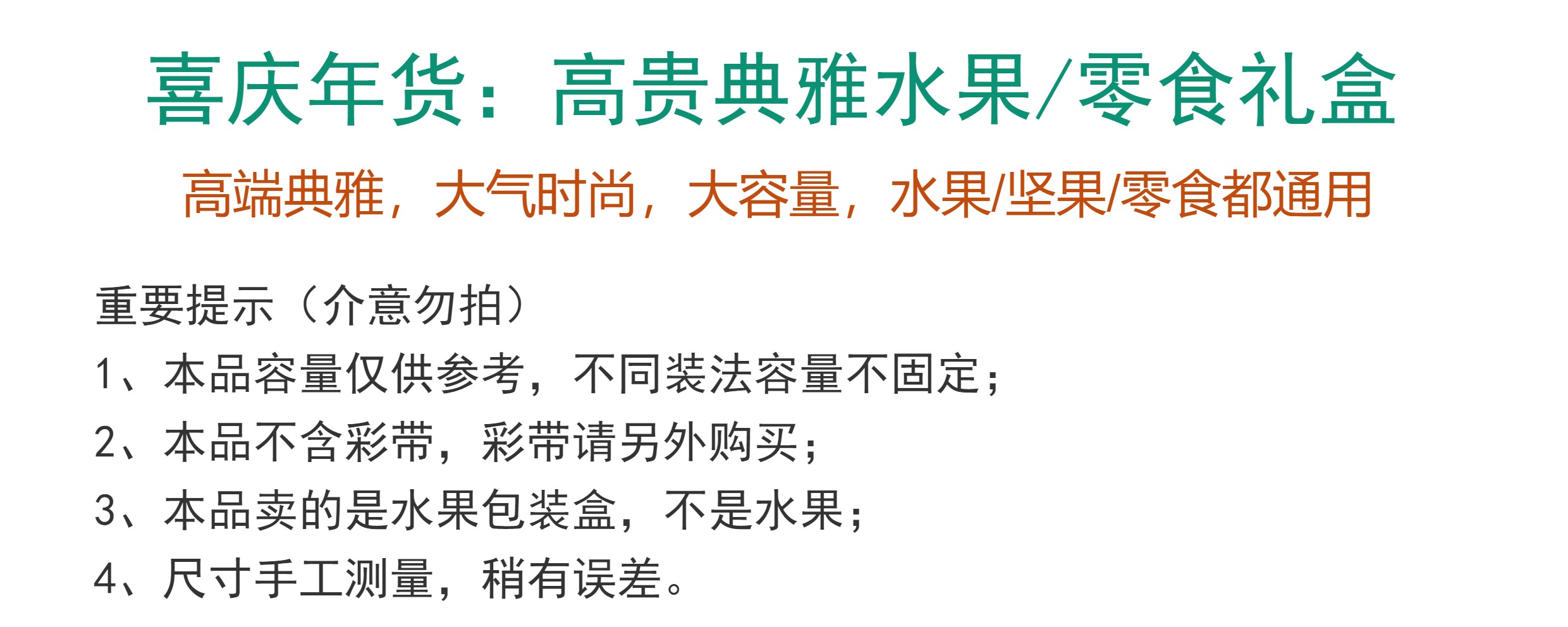 | Color | 25 juegos de regalo de fruta fresca ZS (bajo + cubierta + cuerda) (alrededor de 10 jin), XY pequeño techo solar rojo (bajo + cubierta + cuerda) 10 juegos (alrededor de 5 - 8 jin), XY gran techo solar rojo (bajo + cubierta + cuerda) 10 juegos de aproximadamente 8 - 10 jin, 39 - bolsa de regalo (arroz blanco) 10 (sin caja de regalo), mariposa en polvo romántico - caja de regalo 10 (sin bolsa de regalo), chocolate rojo entusiasta - caja de regalo 10 (sin bolsa de regalo), fruta fresca jin Yingxiang - 10 juegos de aproximadamente 10 paquetes, 39 - bolsas de regalo (caramelo rojo) 10 (sin caja de regalo), 10 juegos de regalos de fruta de cardíaco (alrededor de 8 - 10 jin), 10 juegos de caja de regalo de una sola capa naranja, 10 juegos de caja de regalo de doble capa naranja, 10 juegos de caja de regalo de clavos púrpura transparente, 10 juegos de Bafang Laicai - 10 juegos de 10 jin, lleno de oro feliz (36 - S) 10 juegos de 8 - 10 jin, 39 (rojo transparente) 10 juegos de 8 - 10 jin, Año Nuevo Rojo (50H-01) 10 juegos (alrededor de 8 - 10 jin), bendición llena - 10 juegos de caja de regalo de tarjeta de oro (alrededor de 8 - 10 jin) |