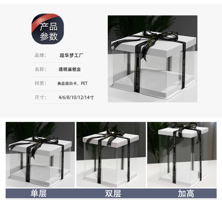6 pulgadas 4 capas 22 * 22 * 40 (5pcs) sin cinta - caja de pastel transparente blanca