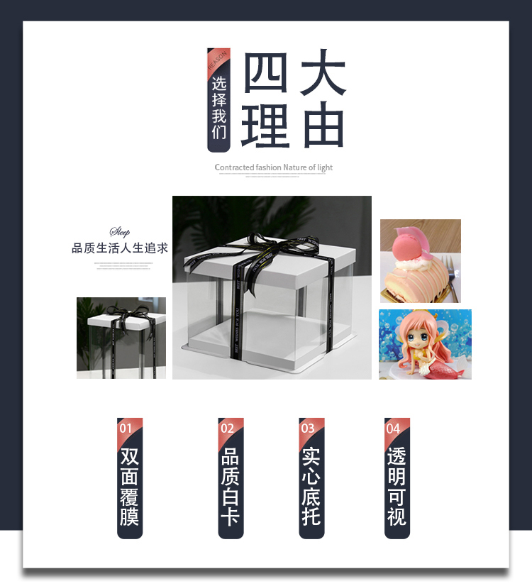 8 pulgadas 4 capas 26 * 26 * 40 (5pcs) sin cinta - caja de pastel transparente blanca