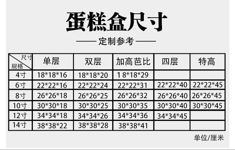 | Especificaciones y modelos | 6 pulgadas de una sola capa 22 * 22 * 16 (5) sin cinta - caja de pastel transparente blanca, 4 pulgadas de una sola capa 18 * 18 * 15 (5) sin cinta - caja de pastel transparente blanca, 4 pulgadas de doble capa 18 * 18 * 20 (5) sin cinta - caja de pastel transparente blanca, 4 pulgadas de altura 18 * 18 * 29 (5) sin cinta - caja de pastel transparente blanca, 6 pulgadas de doble capa 22 * 22 * 24 (5) sin cinta - caja de pastel transparente blanca, 14 pulgadas más alto 38 * 38 * 41 (5) sin cinta - caja de pastel transparente blanca, 6 pulgadas más alto 22 * 22 * 30 (5) sin cinta - caja de pastel transparente blanca, 6 pulgadas 4 capas 22 * 22 * 40 (5) sin cinta - caja de pastel transparente blanca, 6 pulgadas 5 capas de modelo de globo 22 * 22 * 45 (5) sin cinta - caja de pastel transparente blanca, 8 pulgadas de una sola capa 26 * 26 * 18 (5) sin cinta - caja de pastel transparente blanca, 10 pulgadas de una sola capa 30 * 30 * 18 (5) sin cinta - caja de pastel transparente blanca, 10 pulgadas de doble capa 30 * 30 * 25 (5) sin cinta - caja de pastel transparente blanca, 8 pulgadas de 4 capas 26 * 26 * 40 (5) sin cinta - caja de pastel transparente blanca, 8 pulgadas 5 capas de globo 26 * 26 * 40 (5) sin cinta - caja de pastel transparente blanca, 10 pulgadas 5 capas de globo 30 * 30 * 45 (5) sin cinta - caja de pastel transparente blanca, 12 pulgadas una sola capa 34 * 34 * 18 (5) sin cinta - caja de pastel transparente blanca, 10 pulgadas más alto 30 * 30 * 35 (5) sin cinta - caja de pastel transparente blanca, 10 pulgadas 4 capas 30 * 30 * 40 (5) sin cinta - caja de pastel transparente blanca, 14 pulgadas una sola capa 38 * 38 * 22 (5) sin cinta - caja de pastel transparente blanca, 14 pulgadas doble capa 38 * 38 * 28 (5) sin cinta - caja de pastel transparente blanca, 12 pulgadas doble capa 34 * 34 * 26 (5) sin cinta - caja de pastel transparente blanca, 12 pulgadas más alto 34 * 34 * 37 (5) sin cinta - caja de pastel transparente blanca, 8 pulgadas de doble capa 26 * 26 * 25 (5) sin cinta - caja de pastel transparente blanca, 8 pulgadas más alto 26 * 26 * 31 (5) sin cinta - caja de pastel transparente blanca. |