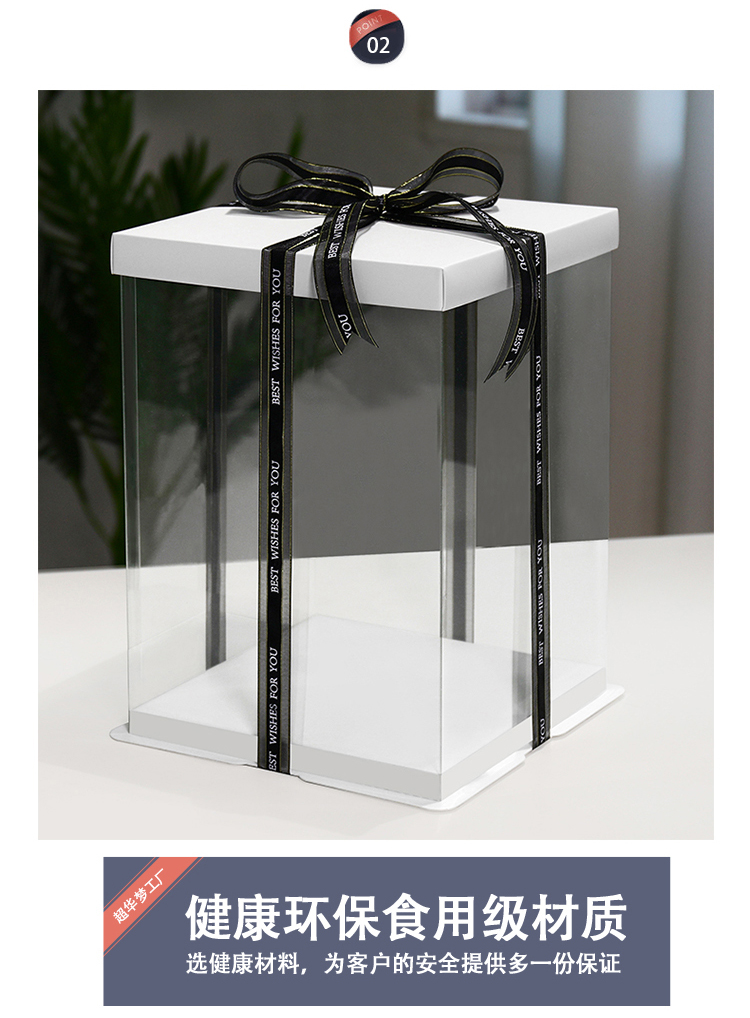 14 pulgadas más alto 38 * 38 * 41 (5 pcs) sin cinta - caja de pastel transparente blanca