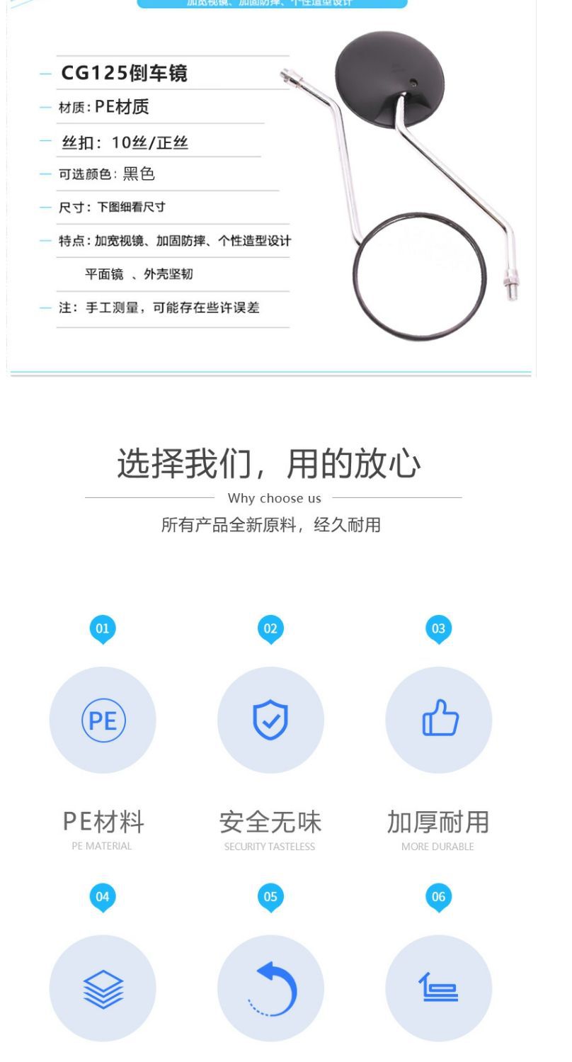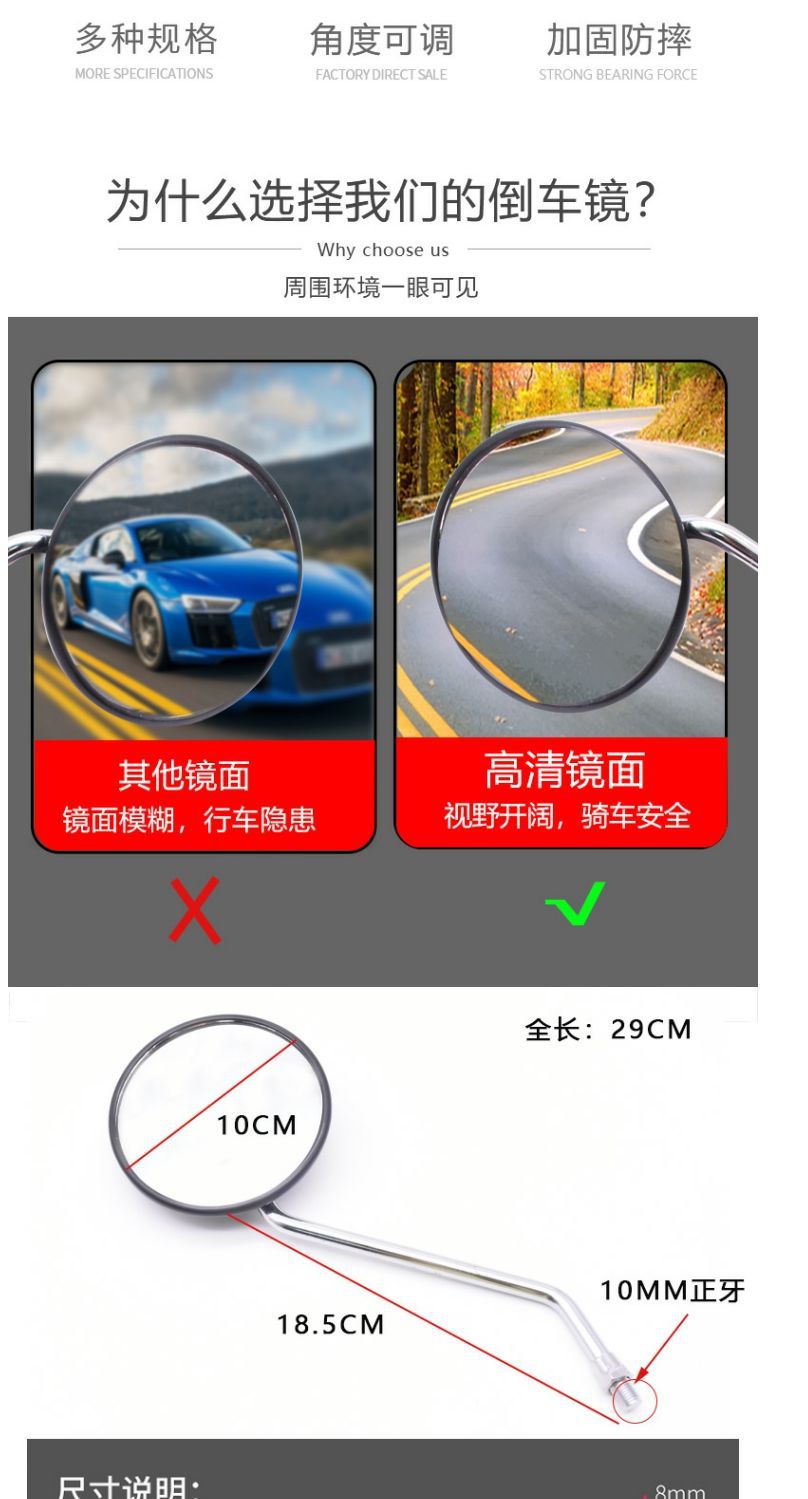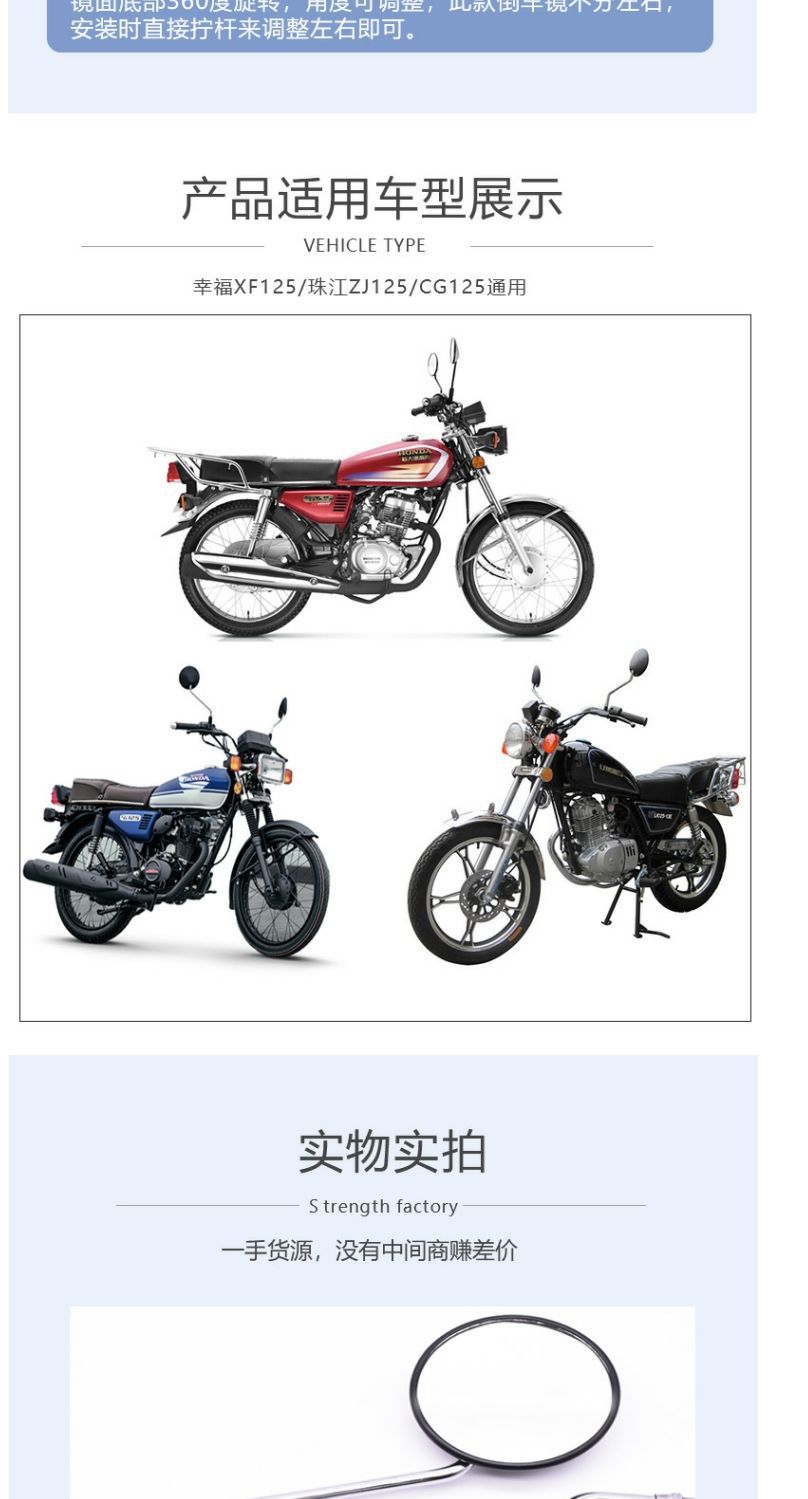 Motocicleta CG125 espejo retrovisor feliz XF10MM reflector universal Pearl River ZJ125 revertir espejo retrovisor convexo