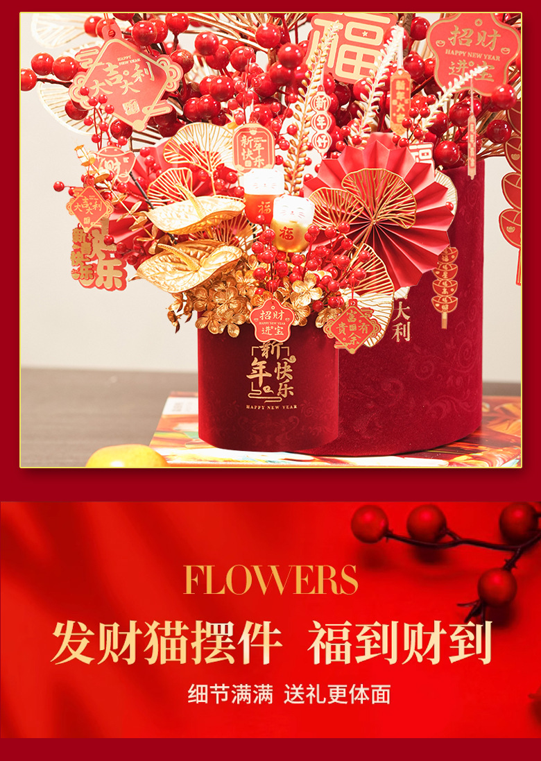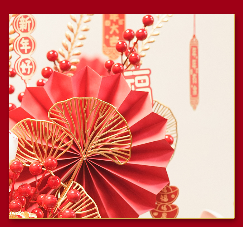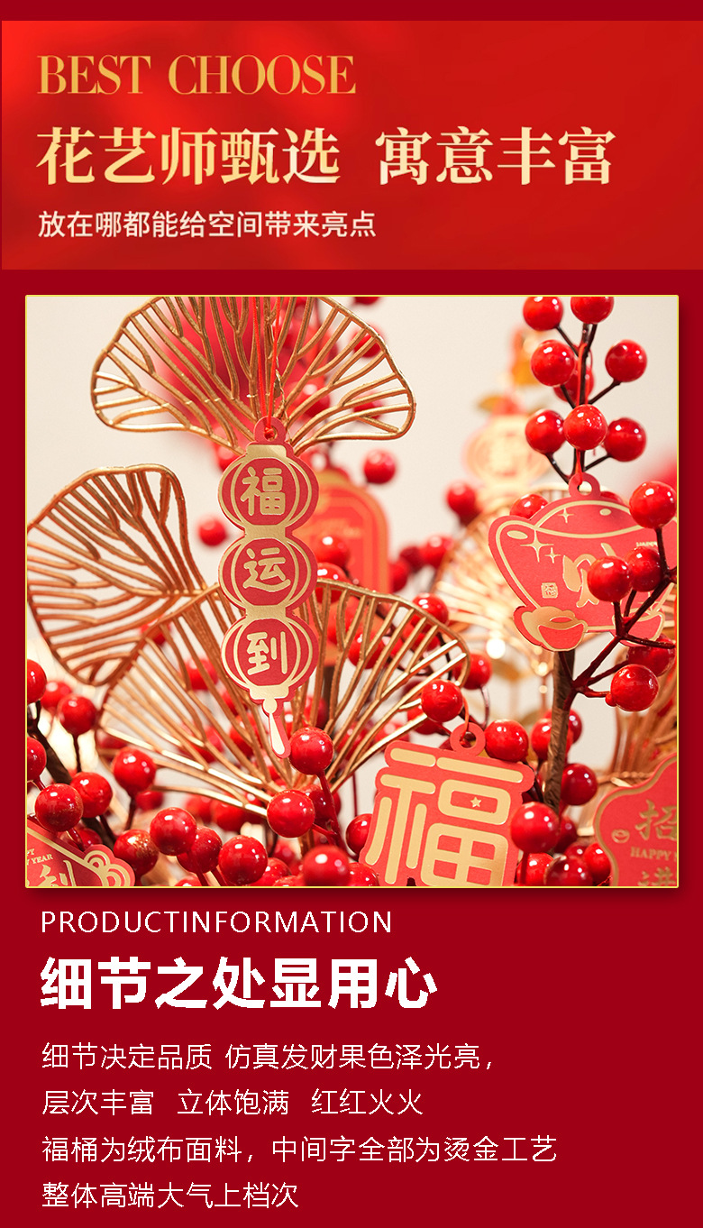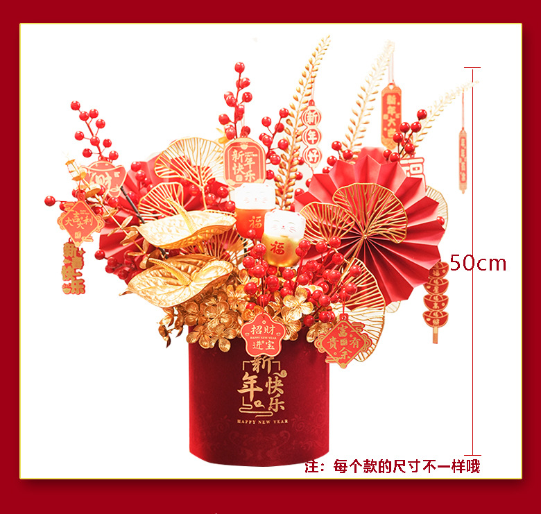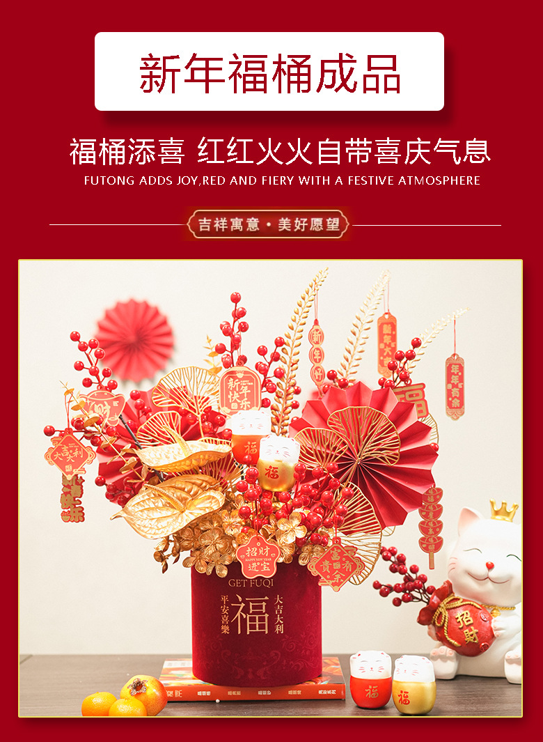 Año Nuevo decoración festivo acabado artificial flor fortuna fruta bendición cubo flor arreglo movimiento de inauguración felicidad en macetas hogar