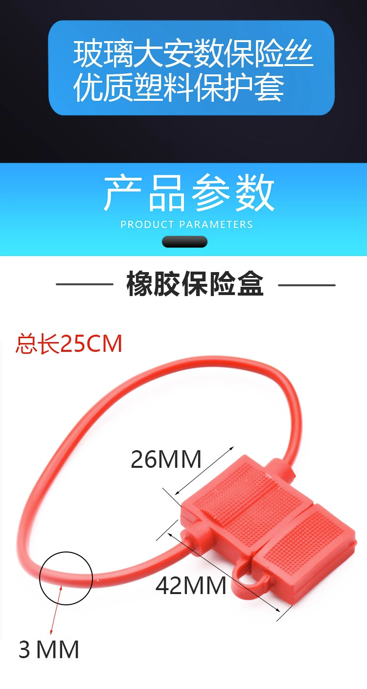 | Especificaciones de embalaje | Caja de seguridad de caucho/conjunto que contiene Hoja de Seguridad,Caja de fusibles de Cerámica/set que contiene fusible,Tubo de seguridad con alambre/raíz con fusible,6*30MM fusible/10 PCs,30A fusible/10 piezas |