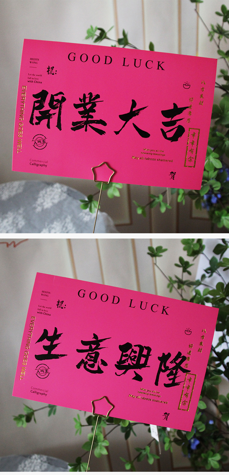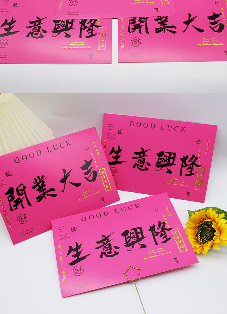 Apertura de gran suerte Tarjeta de cesta de flores negocio en auge tarjeta de felicitación flor material de papel de regalo Tarjeta de bendición roja grande Tarjeta de mensaje
