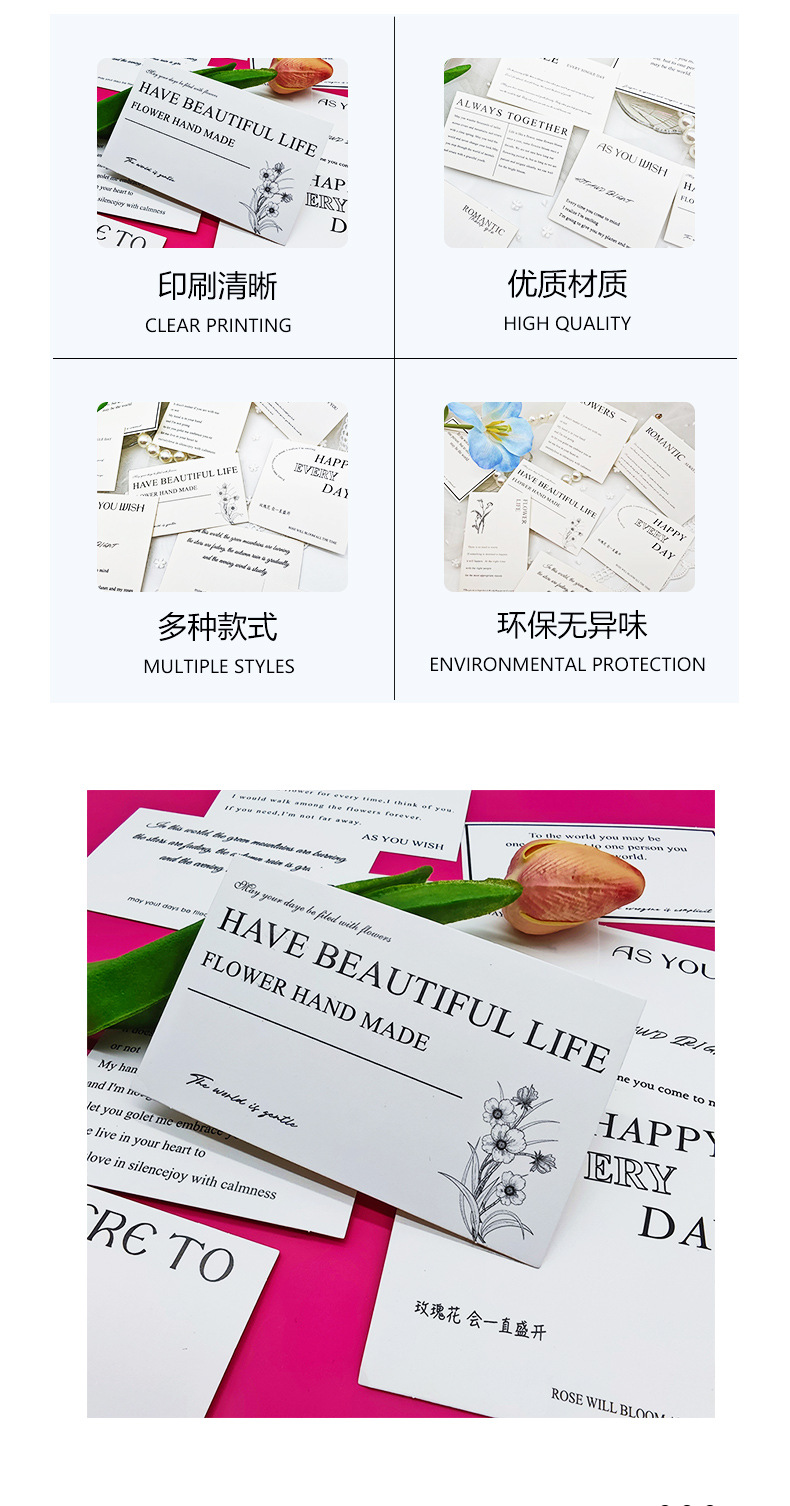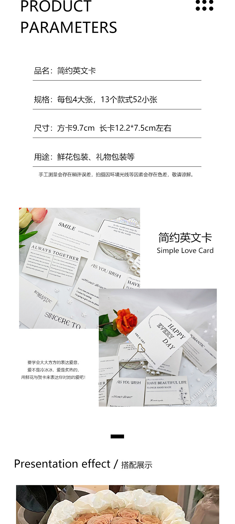 Tarjeta de felicitación de amor simple estilo literario tarjeta inglesa ins flores ramo decoración tarjeta regalo tarjeta universal tarjeta cuadrada Tarjeta blanca