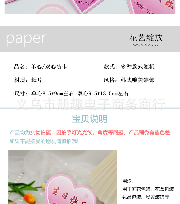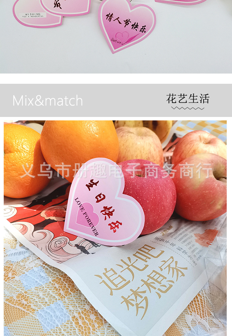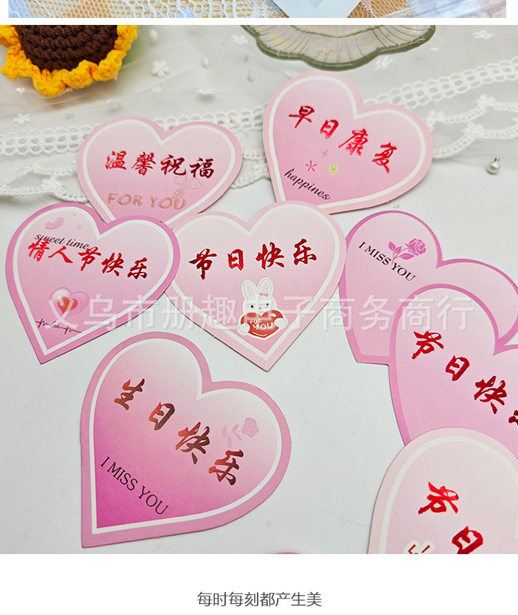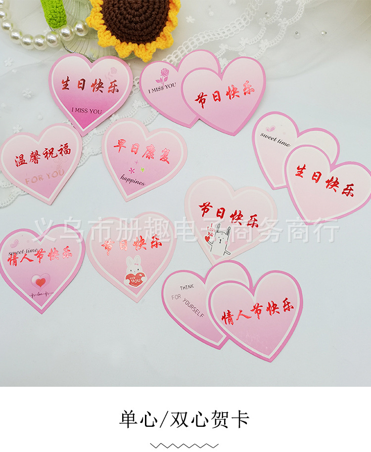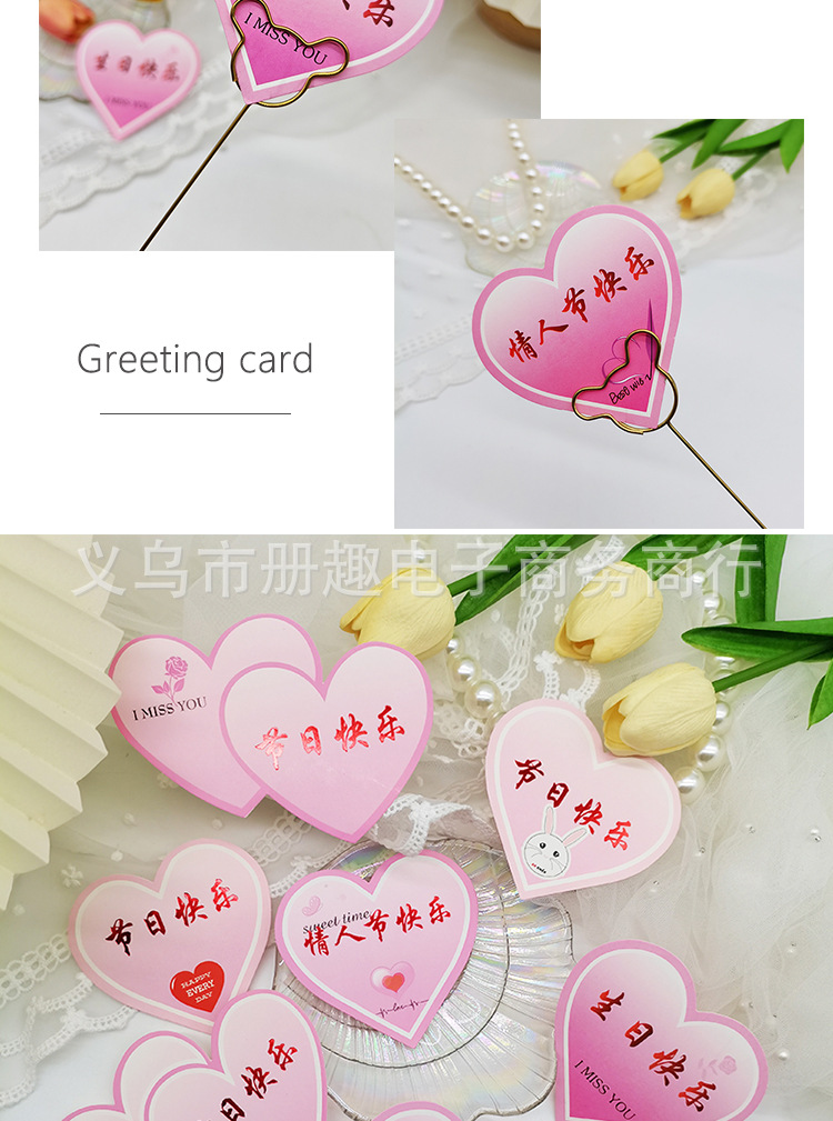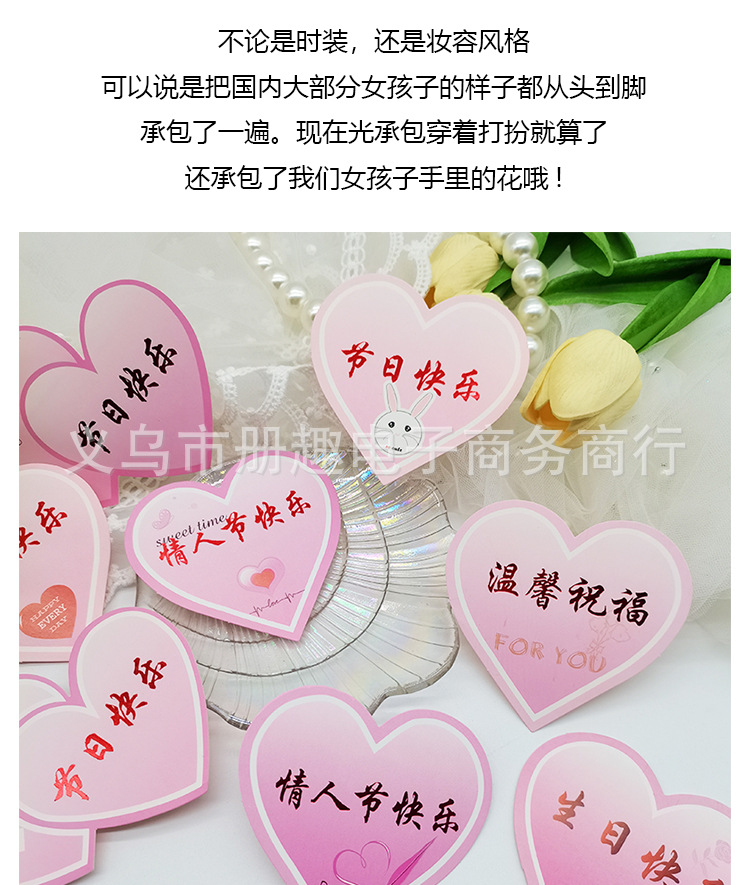 Tarjeta de bendición de corazón de durazno pequeño Insertar tarjeta de felicitación de amor etiqueta Tarjeta de mensaje en forma de corazón ramo de flores material de feliz cumpleaños