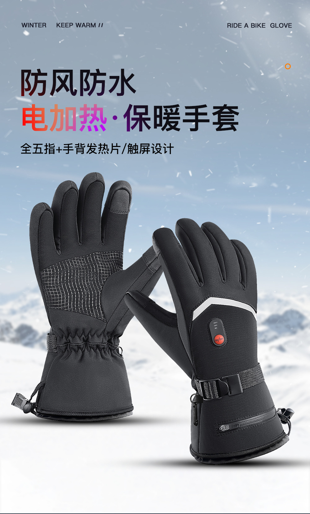 Guantes de calentamiento de invierno al aire libre esquí ciclismo a prueba de viento a prueba de agua pantalla táctil carga calor frío guantes de calentamiento