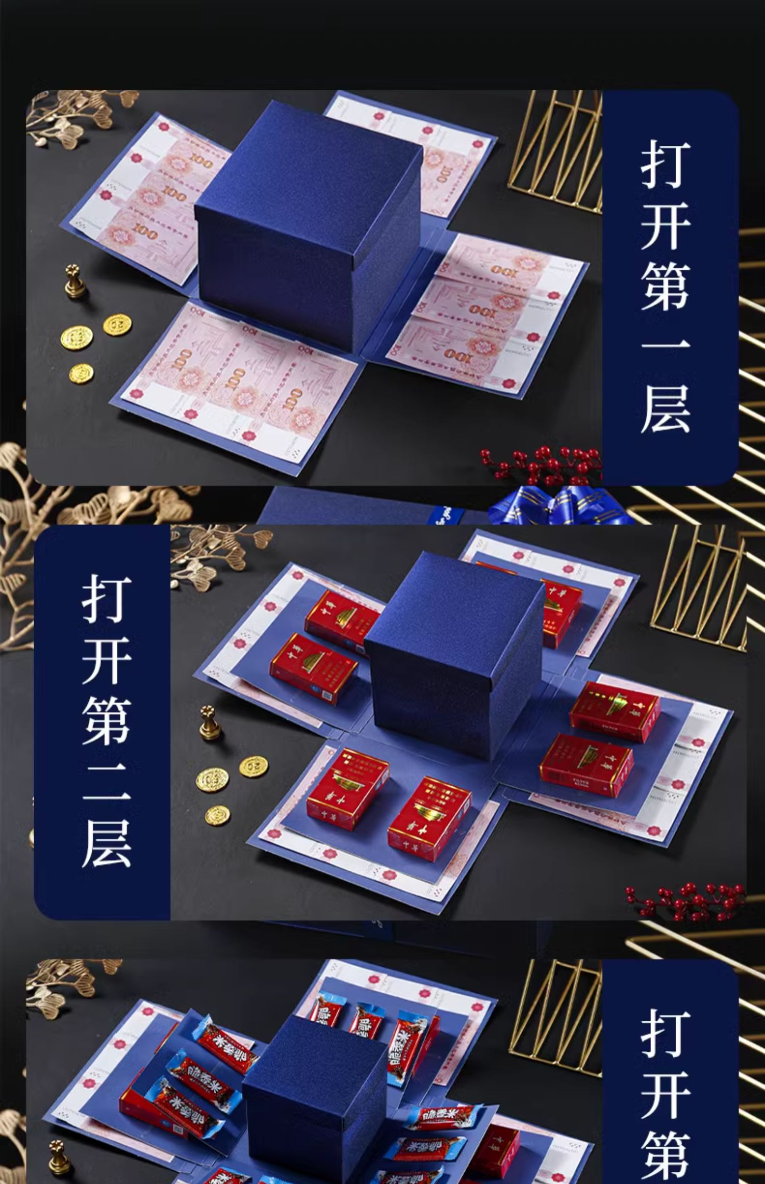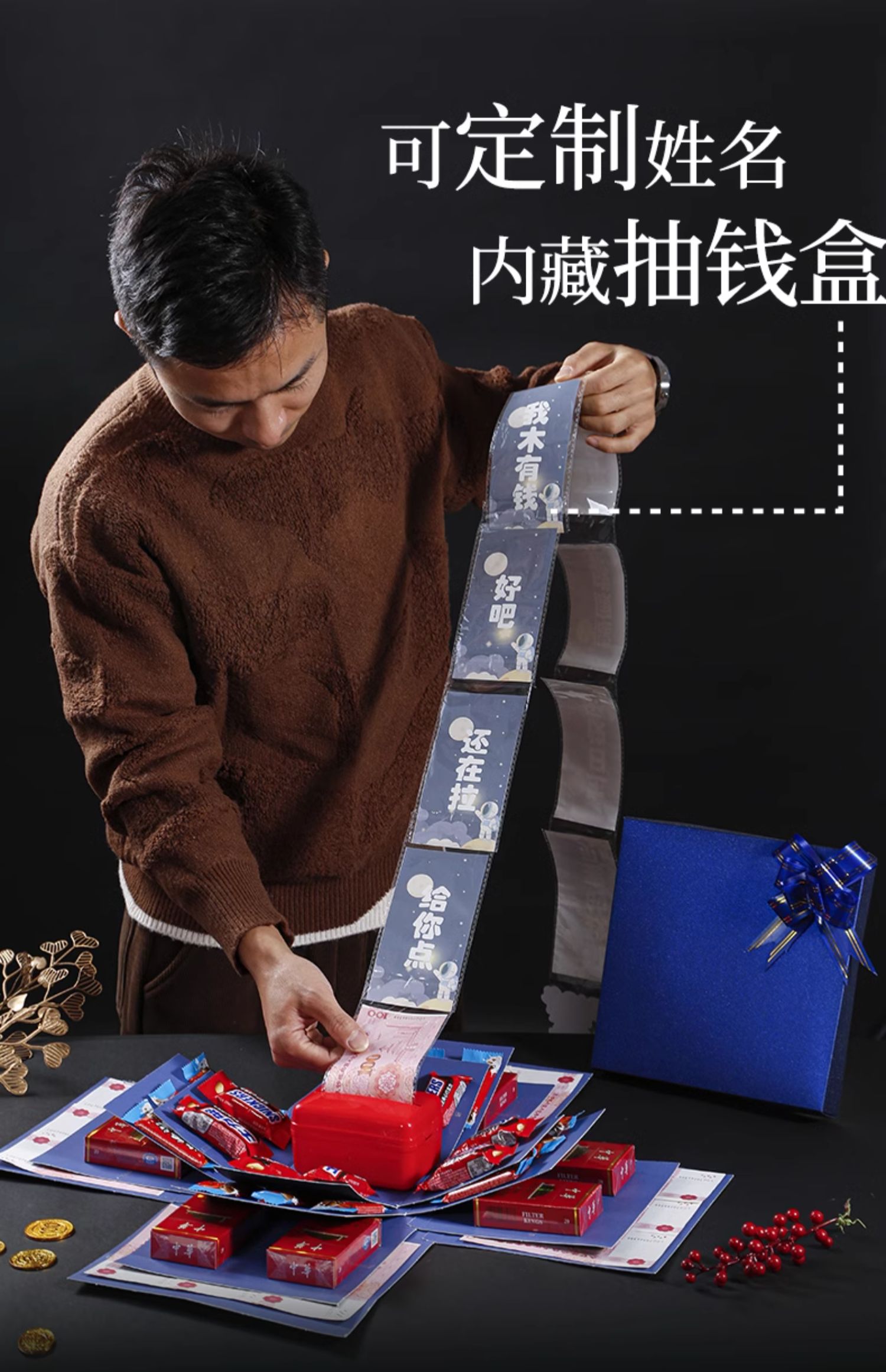 Caja sorpresa de cumpleaños en línea caja de regalo explosiva para hombres para sacar dinero, marido para poner dinero, regalo, caja vacía