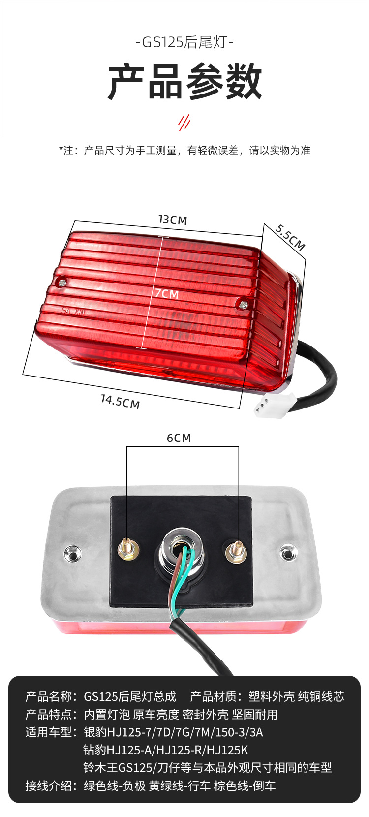 Adaptable a la motocicleta Suzuki King GS125 cuchillo leopardo 125 luz de freno con bombilla de luz trasera
