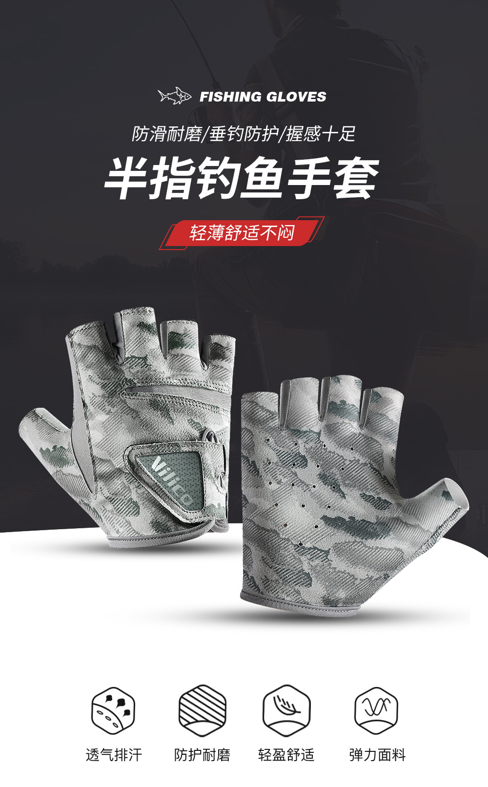 Nuevo guante de pesca profesional de verano medio dedo luya hombre delgado pesca al aire libre transpirable antideslizante protección solar resistente al desgaste mujer