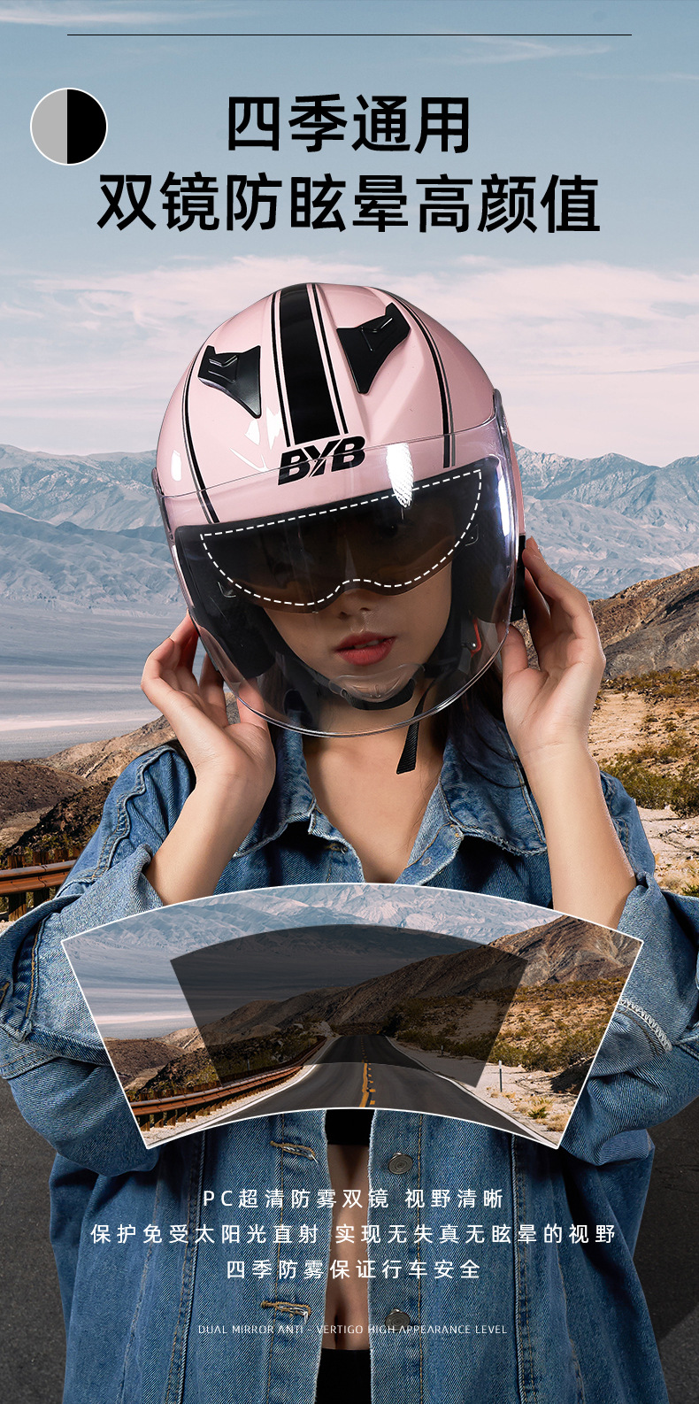 Fábrica al por mayor 3C certificado casco de la motocicleta casco de coche eléctrico cuatro estaciones universal anti-niebla doble lente casco de la motocicleta