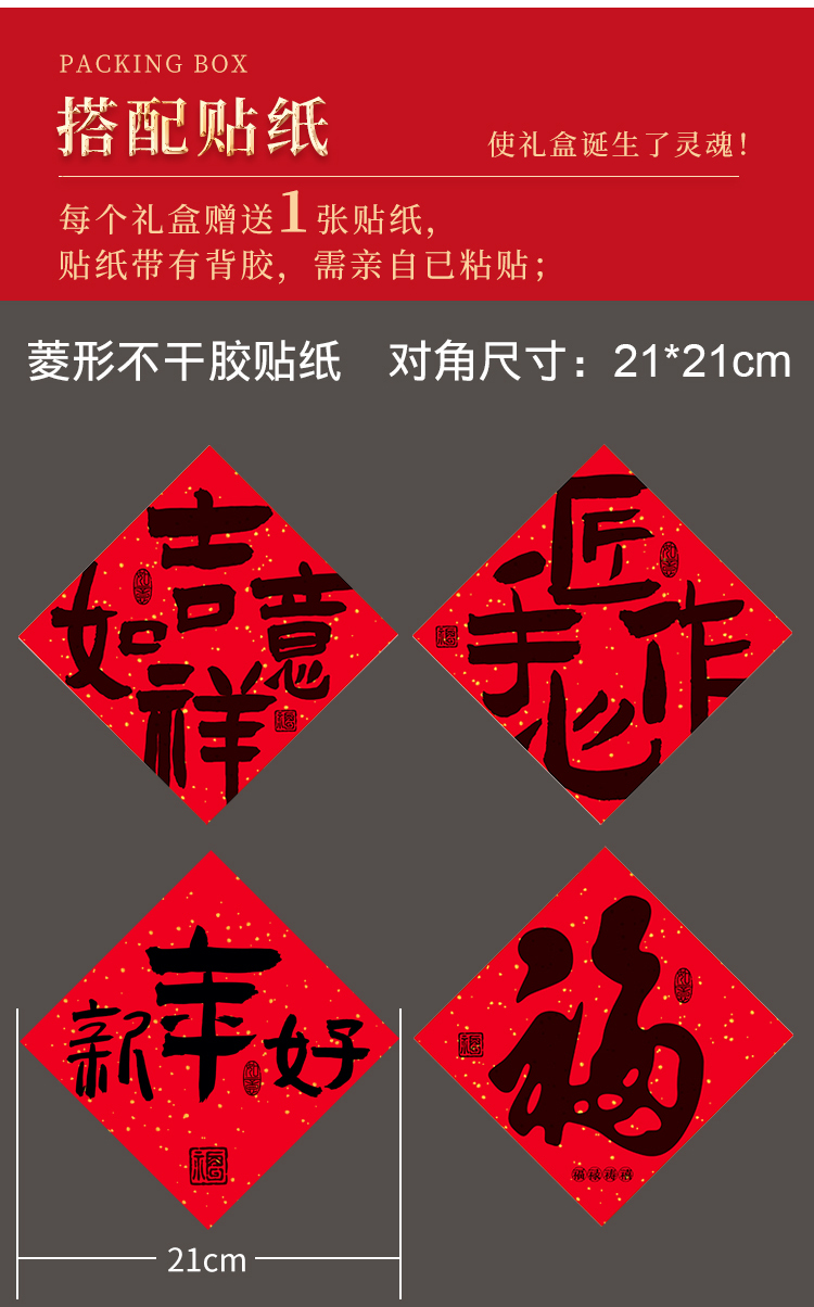 | Color | Gran tamaño - auspicioso Ruyi (barra larga) -1, gran tamaño - ingenioso hecho a mano (barra larga) -1, gran tamaño - delicioso en la punta de la lengua (barra larga) -1, gran tamaño - ingenioso hecho a mano (diamond) -1, gran tamaño - auspicioso Ruyi (diamond) -1, gran tamaño - feliz año nuevo (diamond) -1, gran tamaño - bendición (diamond) -1, gran tamaño - delicioso en la punta de la lengua (barra larga) -1, gran tamaño - ingenioso hecho a mano (diamond) -1, gran tamaño - auspicioso Ruyi (diamond) -1, Largo - Feliz Año Nuevo (Diamond) - 1, Largo - Fu (Diamond) - 1, Mediano - Auspicioso (Diamond) - 1, Mediano - Hecho a mano (Diamond) - 1, Mediano - Delicioso (Diamond) - 1, Mediano - Especialidad ecológica (Diamond) - 1, Mediano - Hecho a mano (Diamond) - 1, Mediano - Auspicioso (Diamond) - 1, Mediano - Feliz Año Nuevo (Diamond) - 1, Mediano - Fu (Diamond) - 1, Pequeño - Auspicioso (Diamond) - 1, Mediano - Auspicioso (Diamond) - 1, Pequeño - Auspicioso (Diamond) - 1, 1, Pequeño - ingenioso hecho a mano (barra larga) - 1, Pequeño - delicioso en la punta de la lengua (barra larga) - 1, Pequeño - especialidad ecológica (barra larga) - 1, Pequeño - ingenioso hecho a mano (diamond) - 1, Pequeño - auspicioso (diamond) - 1, Pequeño - Año Nuevo (diamond) - 1, Pequeño - Fu (diamond) - 1 |