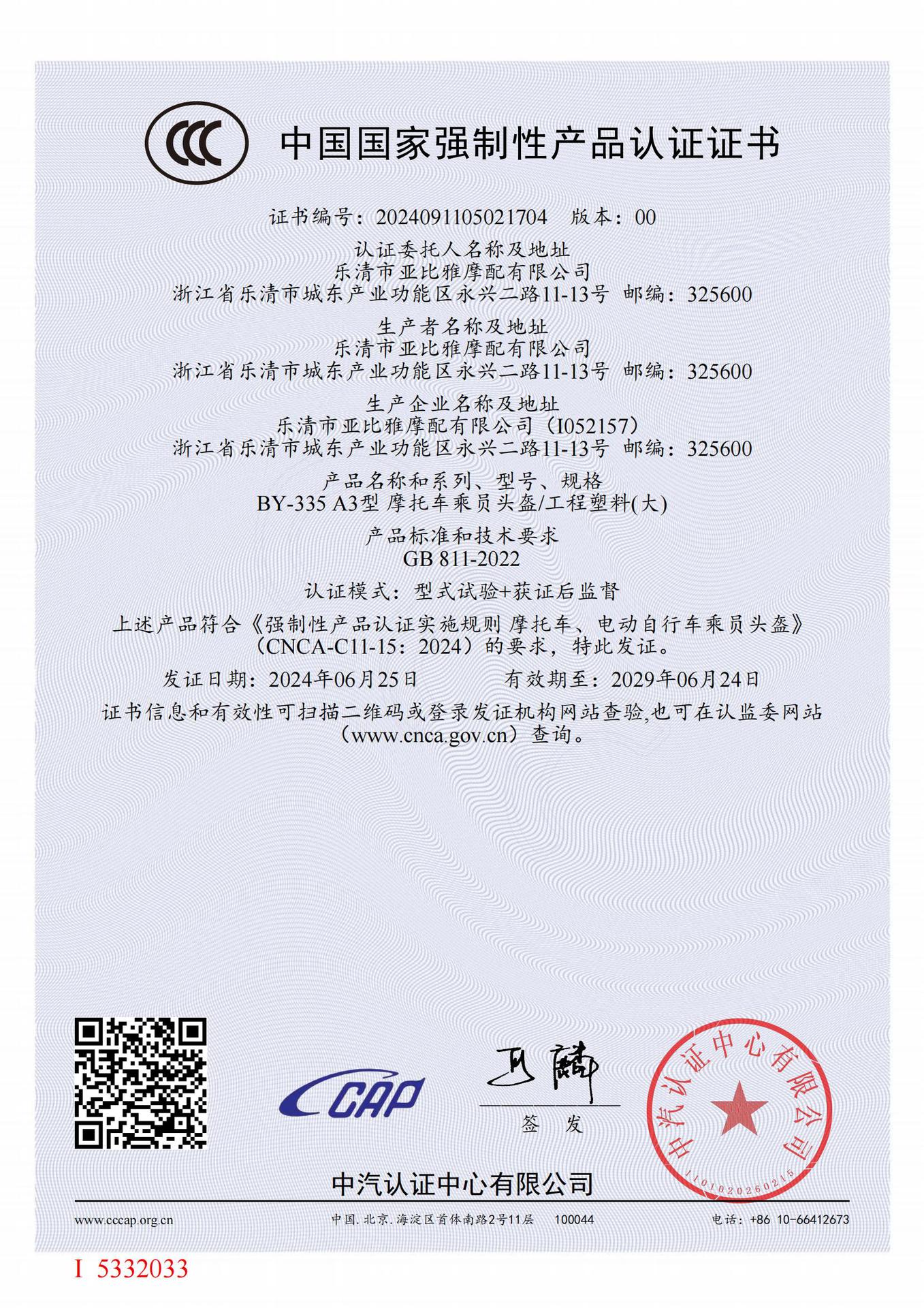 | Número de certificado 3C | 2024091105021704 |