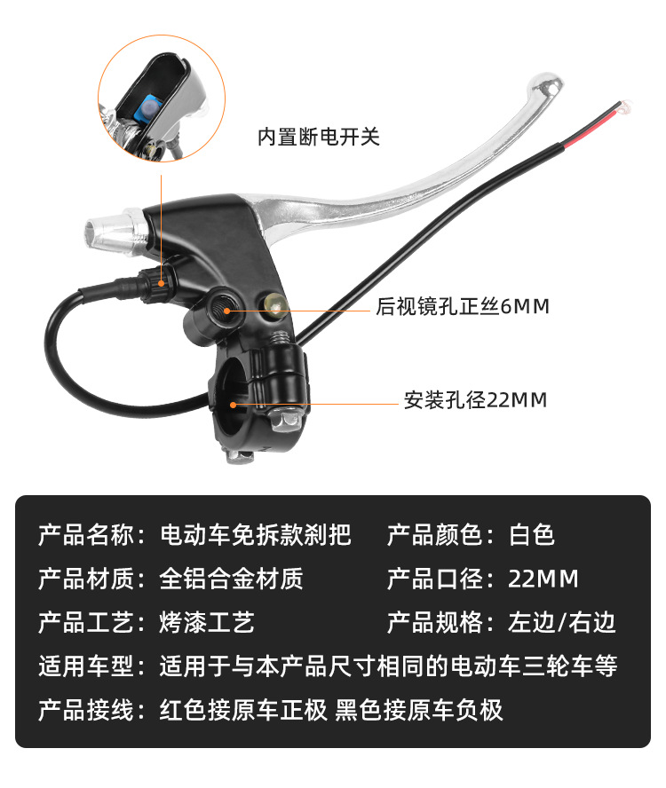 Maneja de freno eléctrico mayorista de aluminio maneja de freno eléctrico de litio maneja de freno de tres ruedas maneja de freno de scooter universal sin desmontaje
