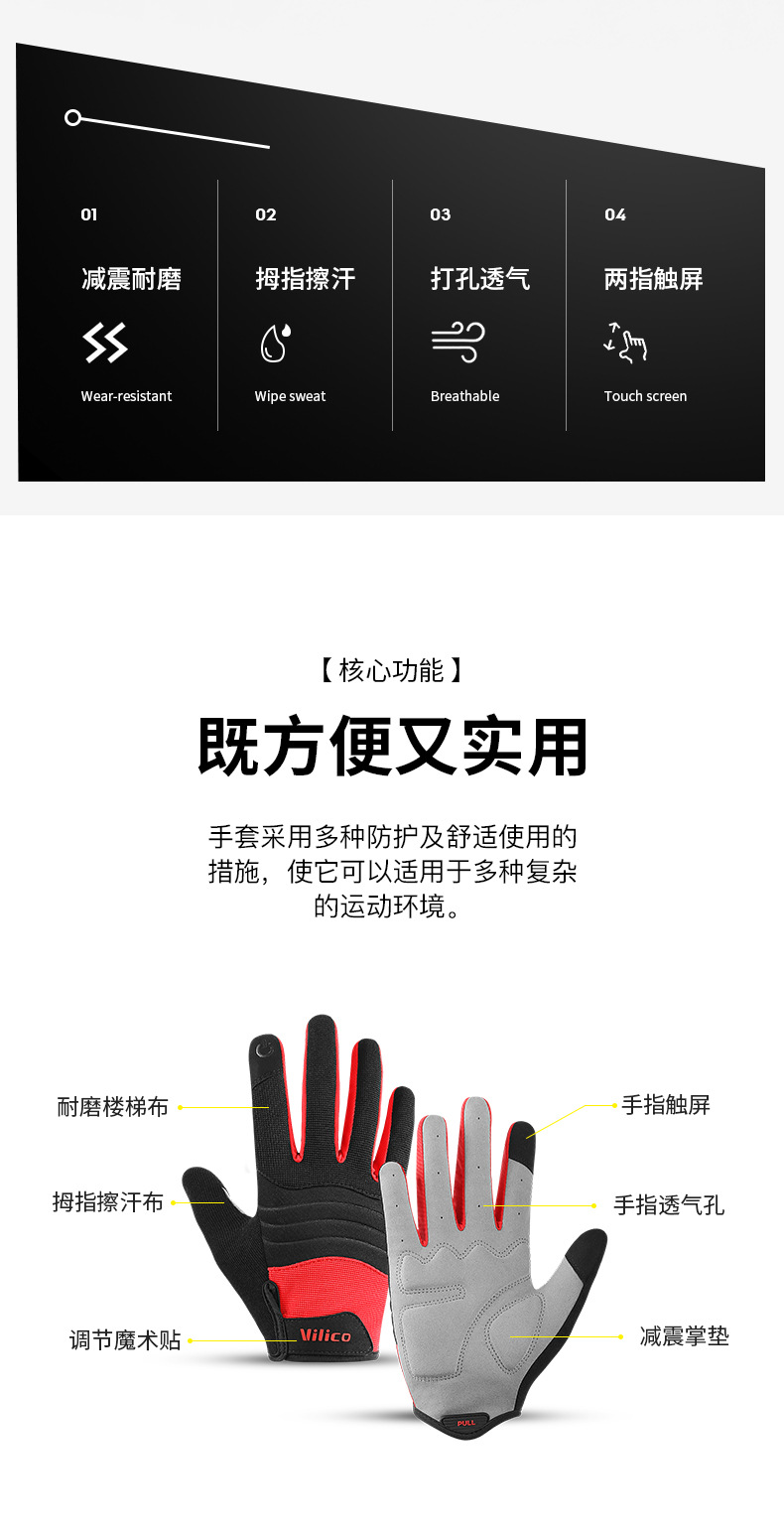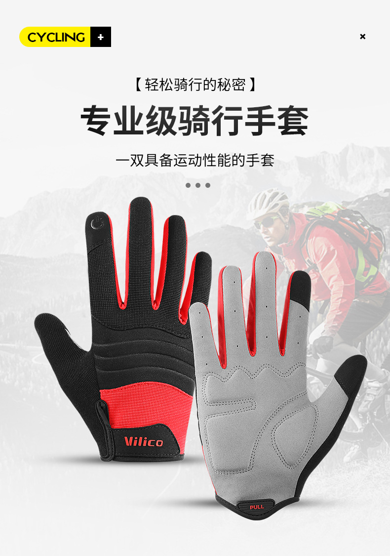 Guantes VILICO para ciclismo de montaña, deportes al aire libre, antideslizantes, resistentes al desgaste, amortiguadores, con pantalla táctil completa, venta al por mayor