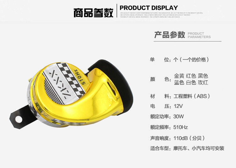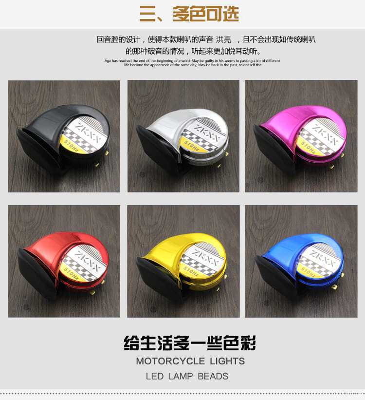 Caracol de la motocicleta de alto volumen 12V cuerno eléctrico accesorios de modificación del coche color agudos cuerno eléctrico silbato impermeable