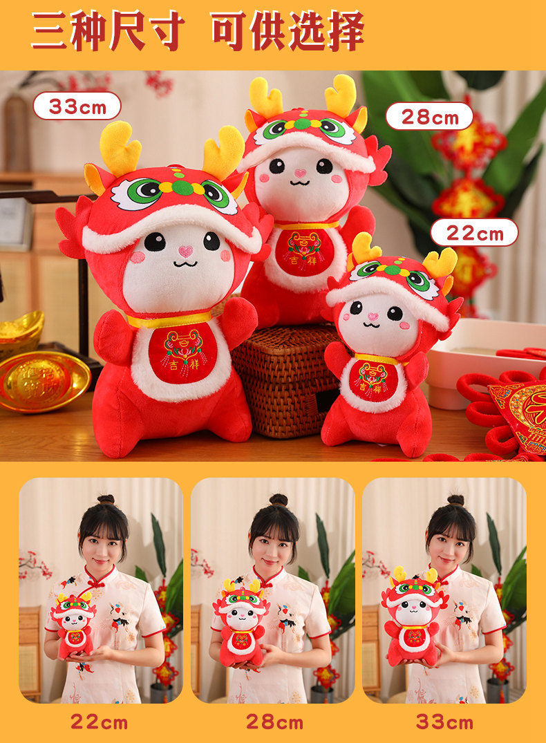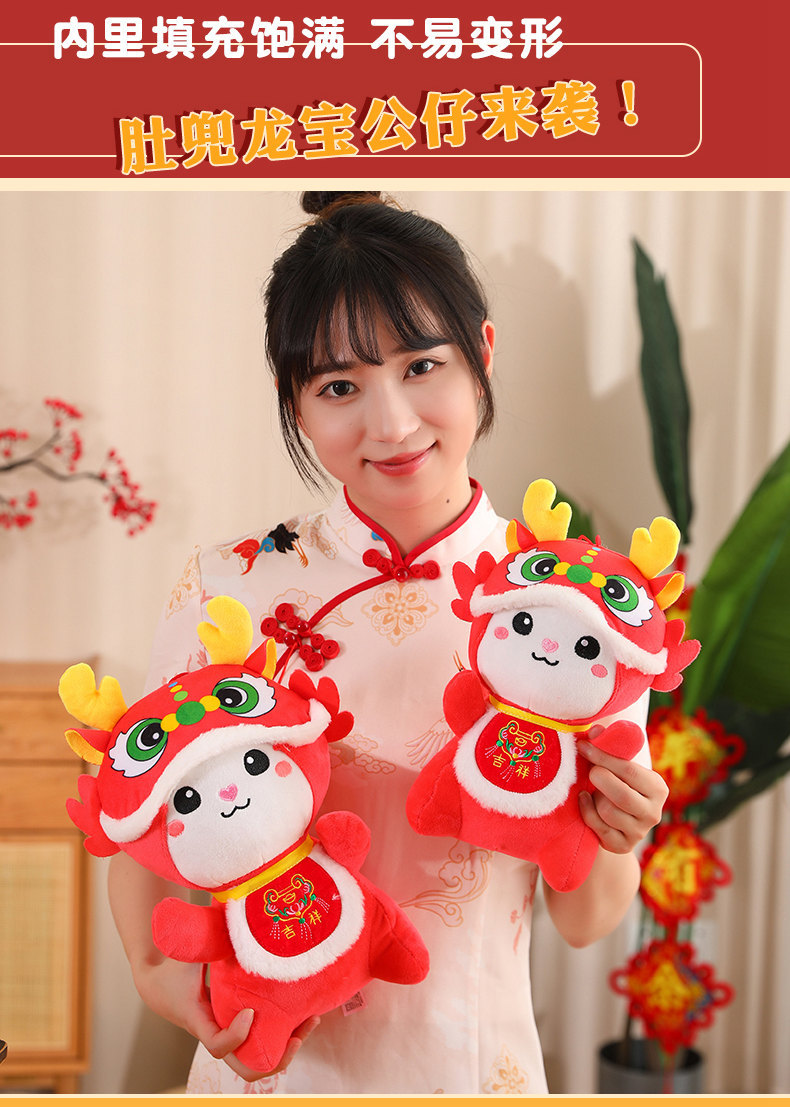2024 dragón año mascota dibujos animados bellyband auspicioso dragón muñeca de peluche de juguete Zodiaco dragón paño muñeca Reunión Anual regalo
