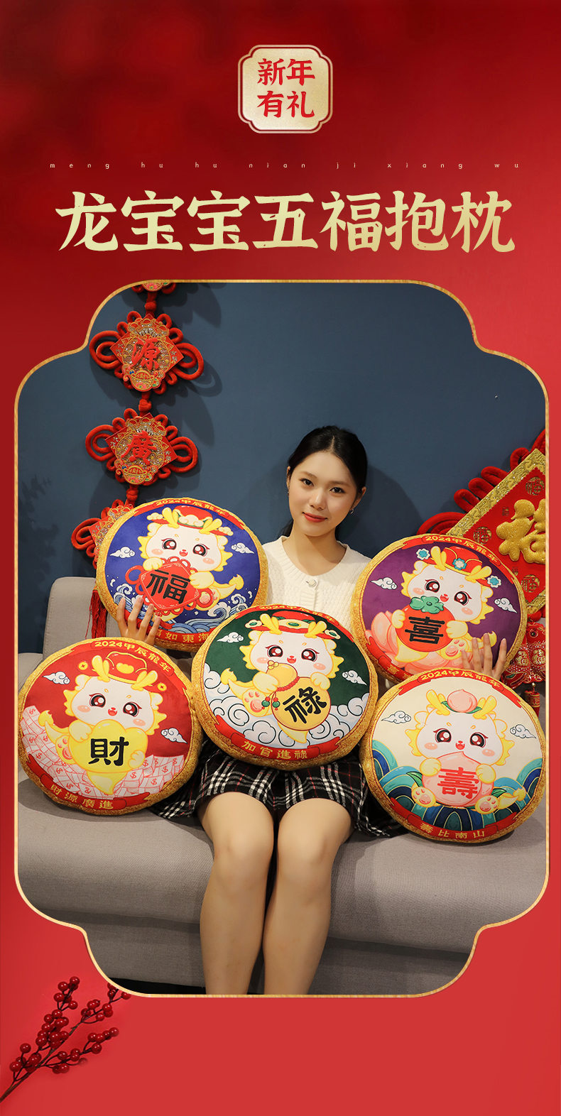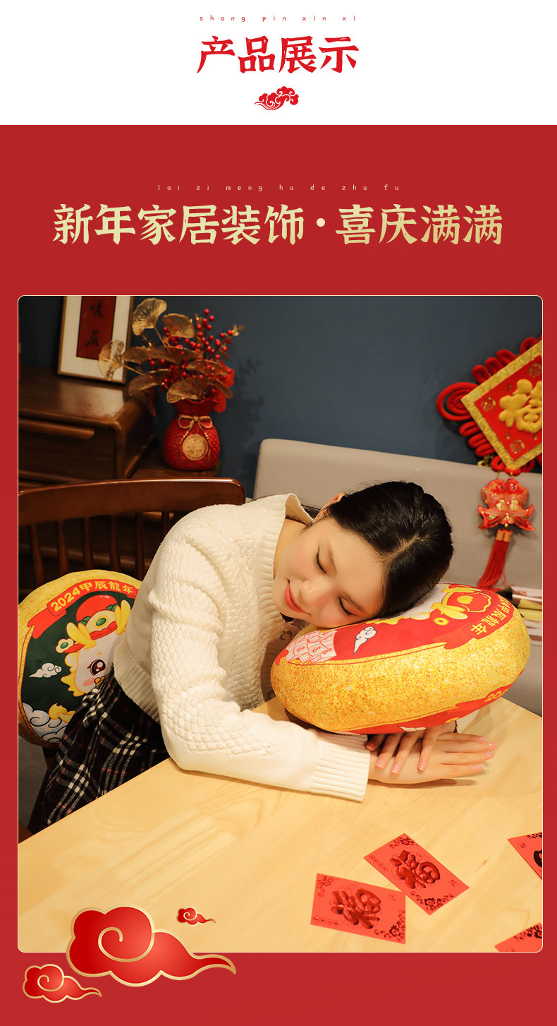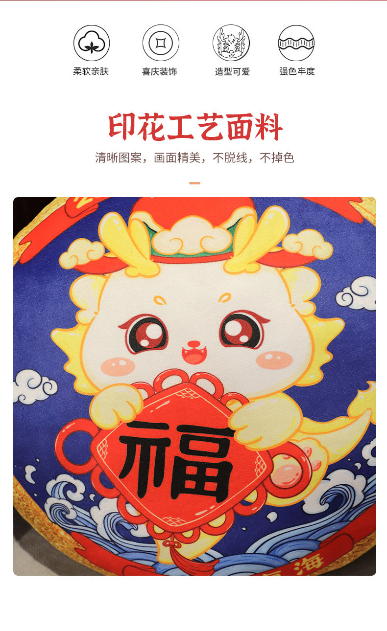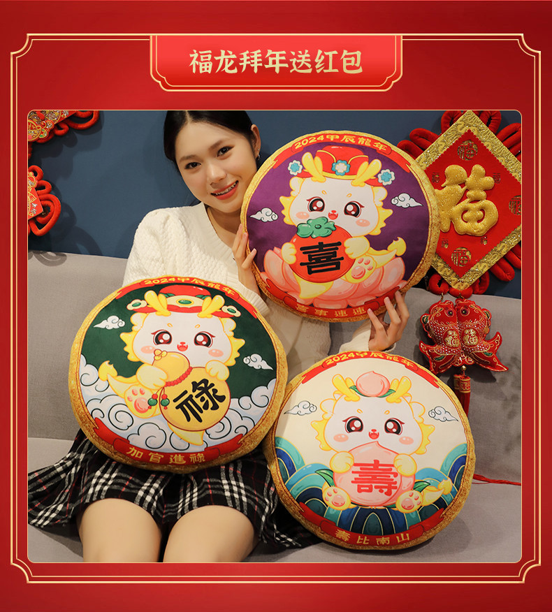 Dragón año mascota 2024 Año Nuevo lindo moda nacional almohada de peluche de juguete Wufu Home Office almohada del coche