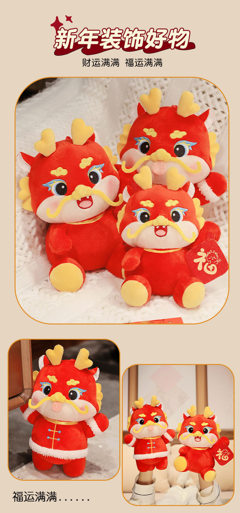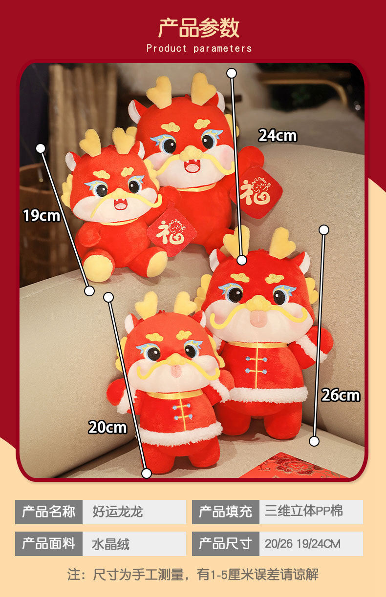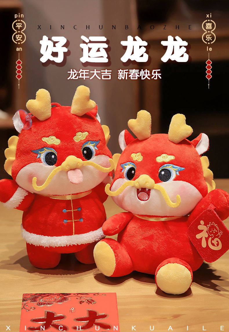 Lucky Dragon Doll Dragon año mascota juguete de peluche Año Nuevo Zodiaco Dragon Doll regalo anual regalo de la reunión