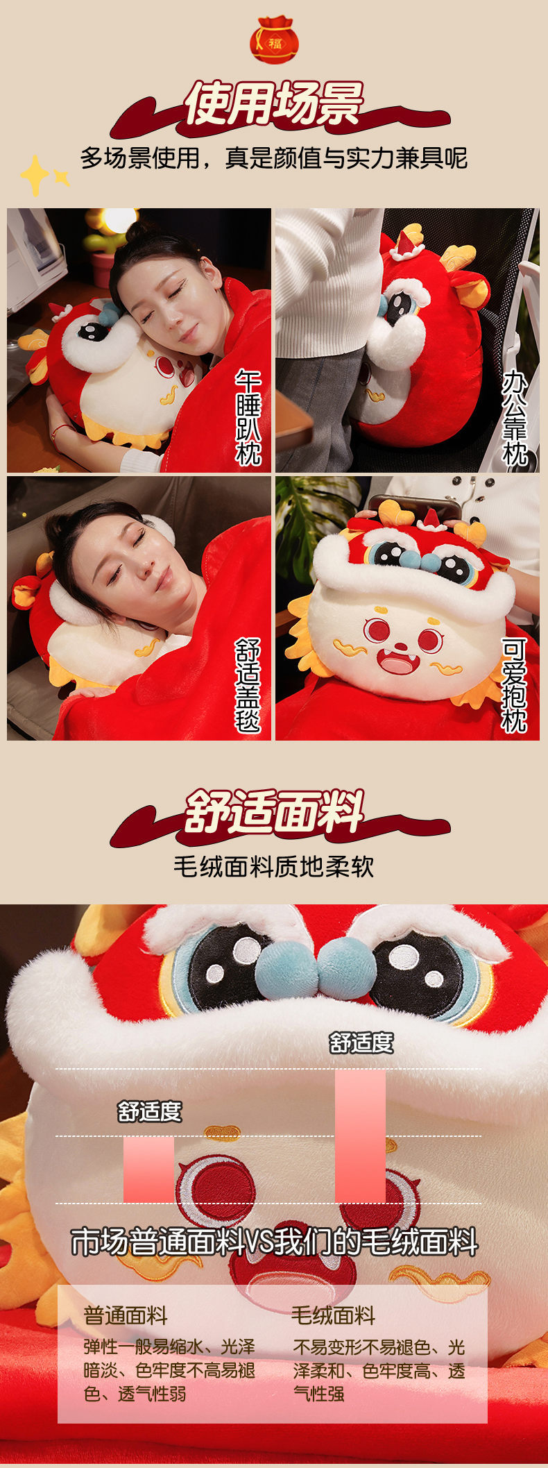 Dragón año León almohada manta dos-en-uno Oficina cojín siesta almohada sofá sala de estar almohada edredón de doble uso