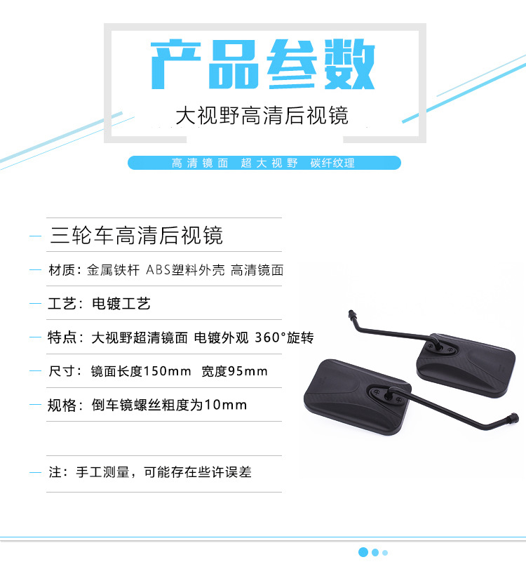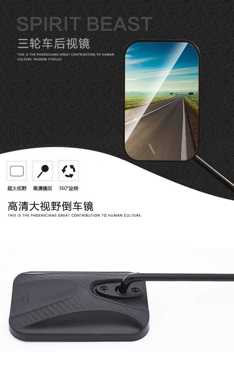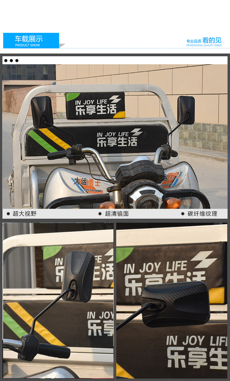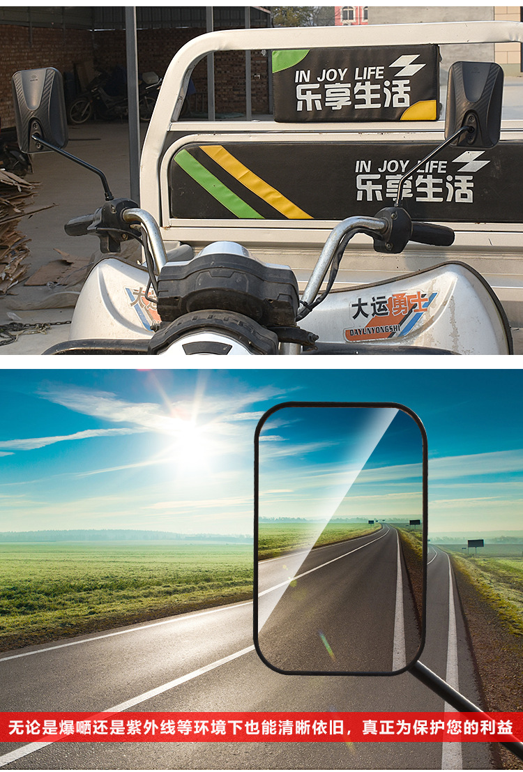 Motocicleta triciclo espejo retrovisor gran visión modificado Futian Longxin Dajiang batería coche espejo retrovisor Prince reflector