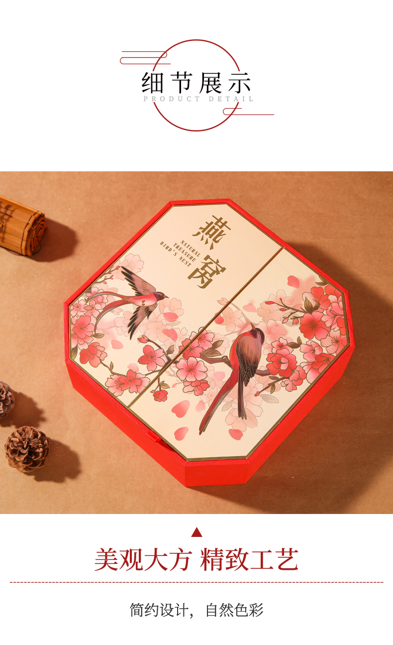 Caja de nido de pájaro, caja de regalo, caja de cartón, caja de regalo de doble puerta abierta, caja redonda, caja octogonal, bolsa de papel de 100 gramos